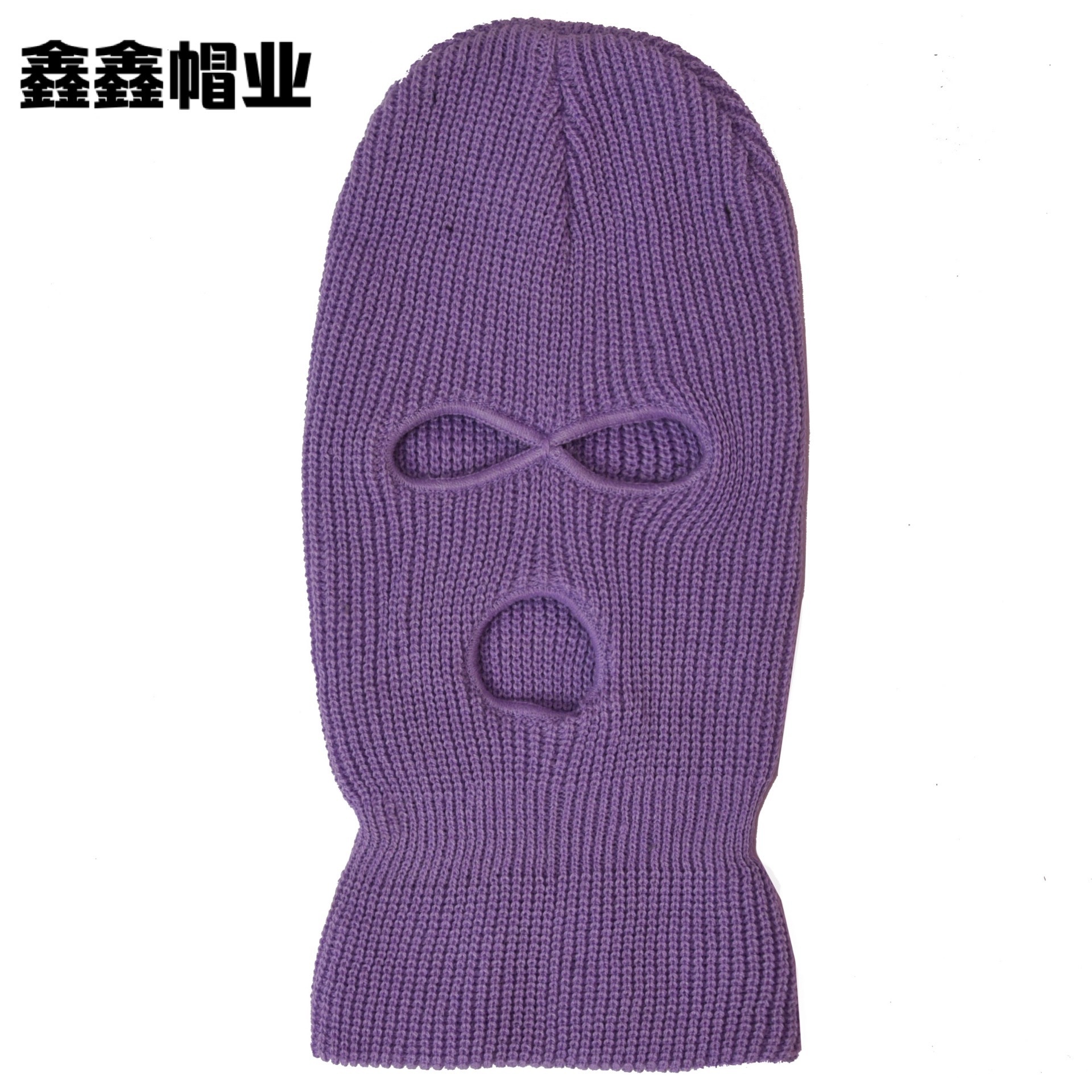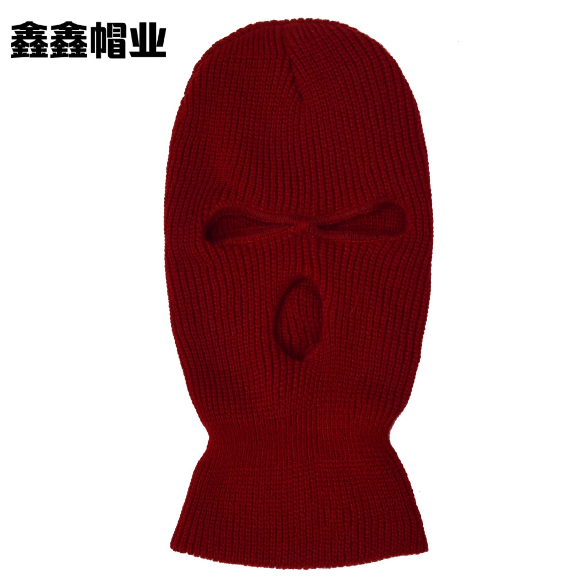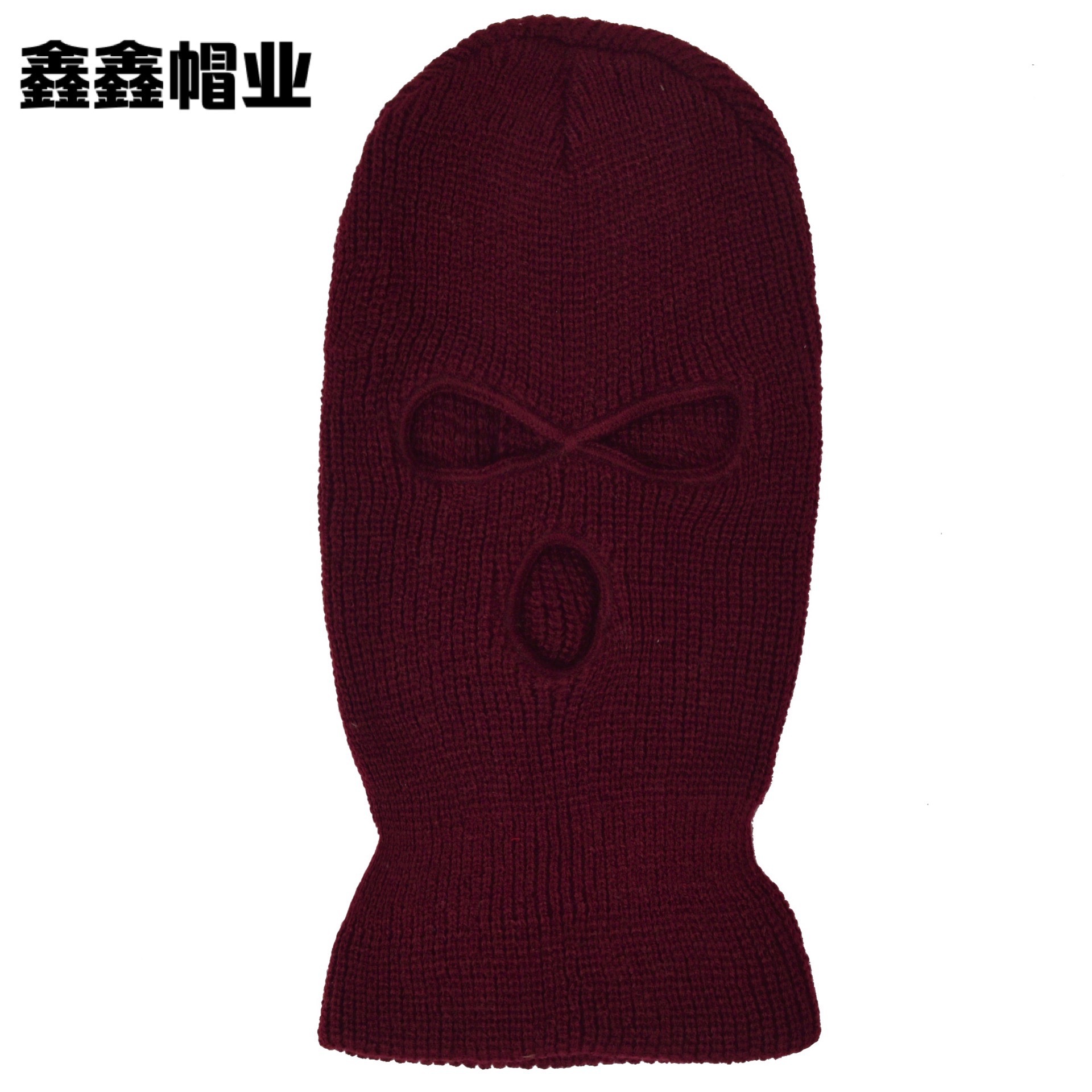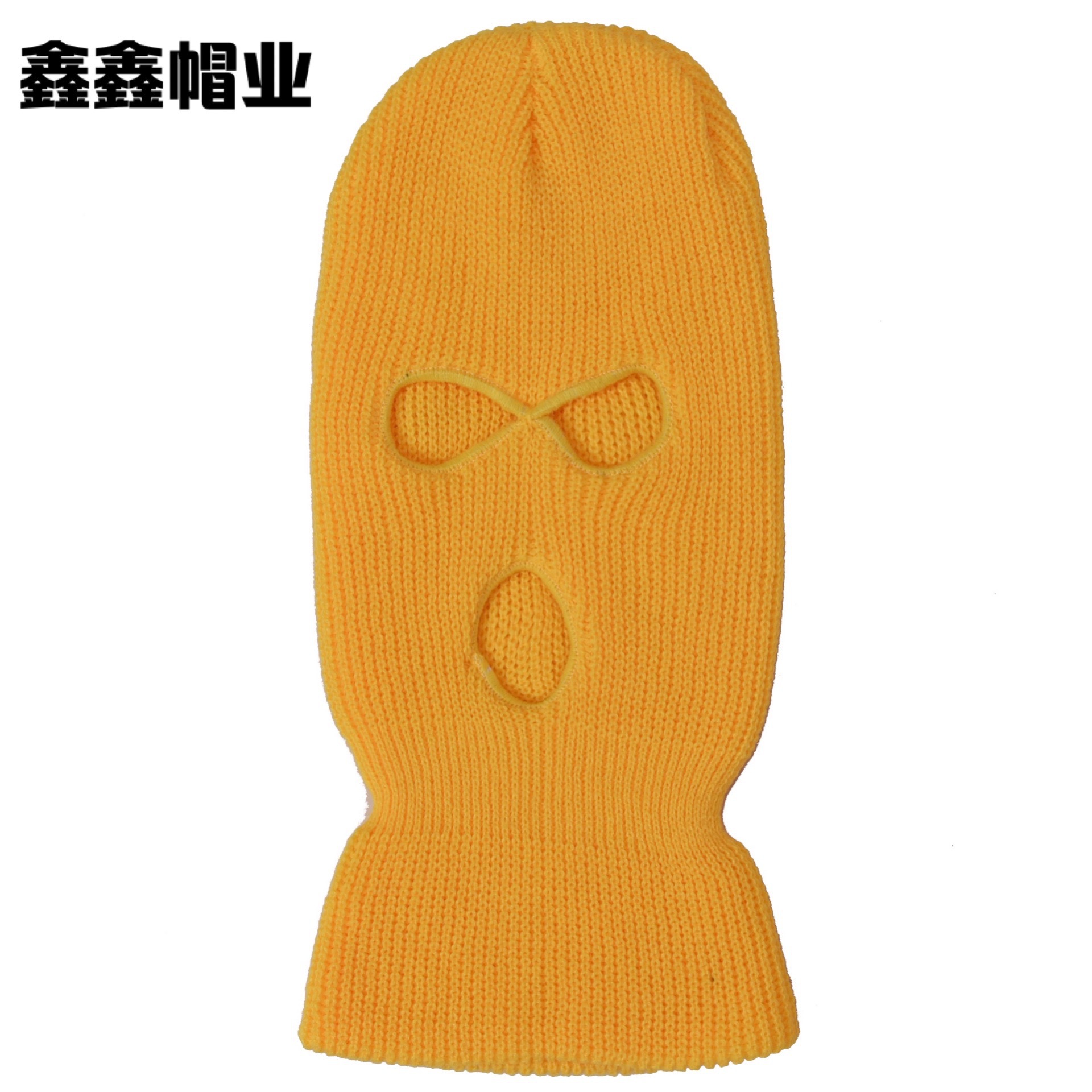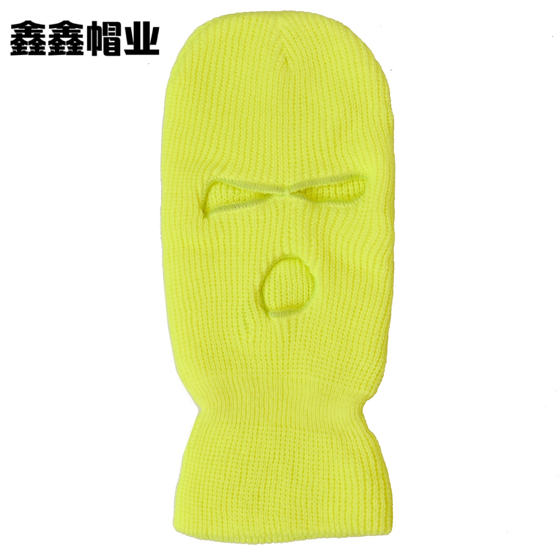 겨울 주괴 바늘 3 홀 니트 모자 캔디 컬러 양모 모자 굴착 구멍 Baotou 야외 사이클링 방풍 마스크 모자
