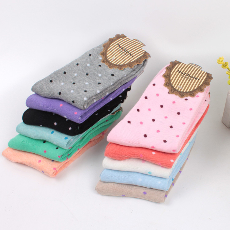 가을 겨울 신상품 도트 무늬 면 여성용 스타킹 두꺼운 캔디 컬러 발목 캐주얼 인스타 트렌드 중간 길이 양말 도매