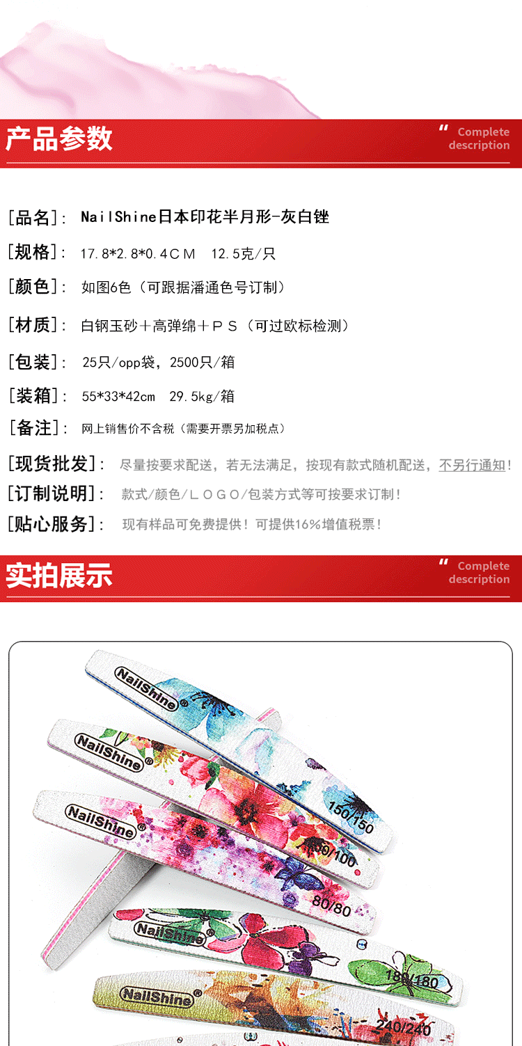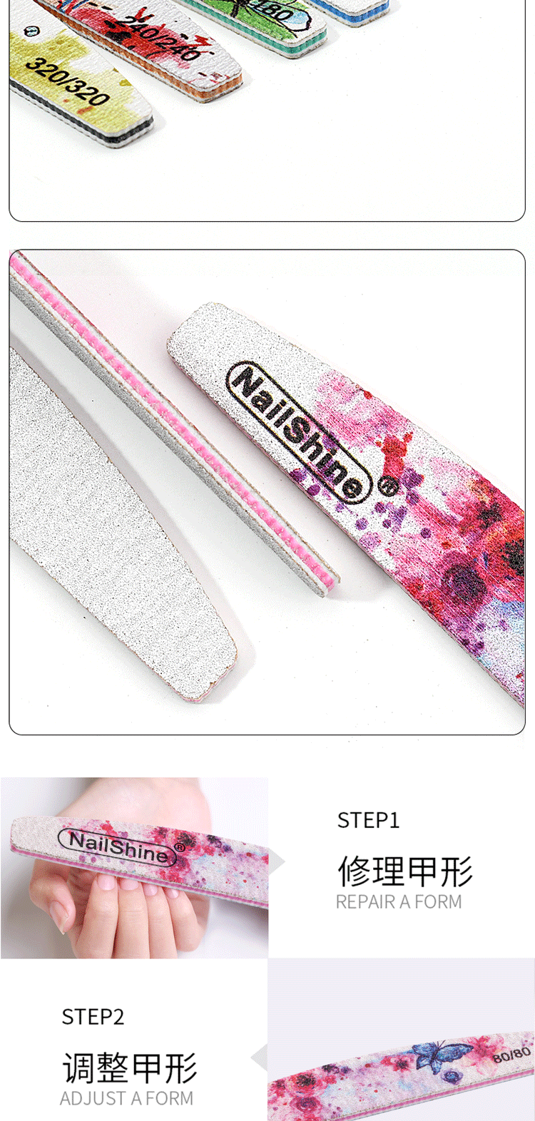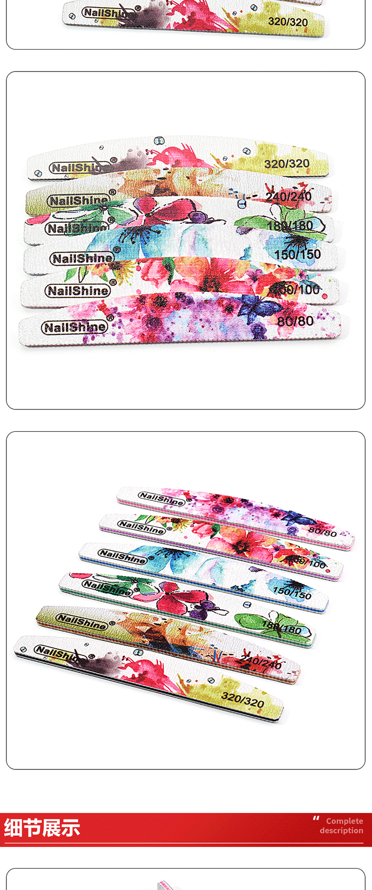 네일 샤인 크로스 보더 일본 사포 반달 네일 파일 인쇄 실제 갑옷 수리를위한 연삭 스트립