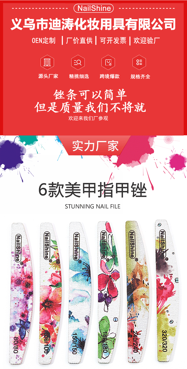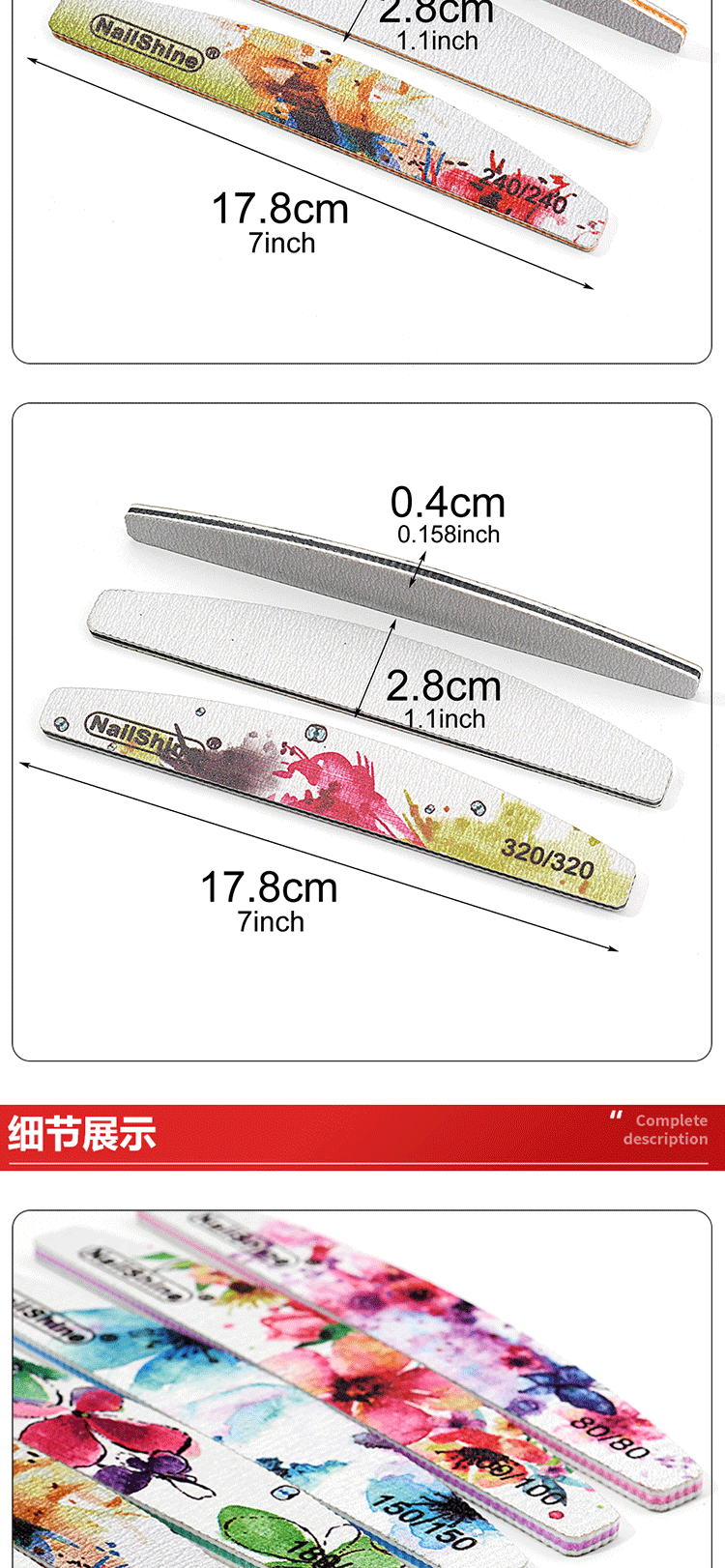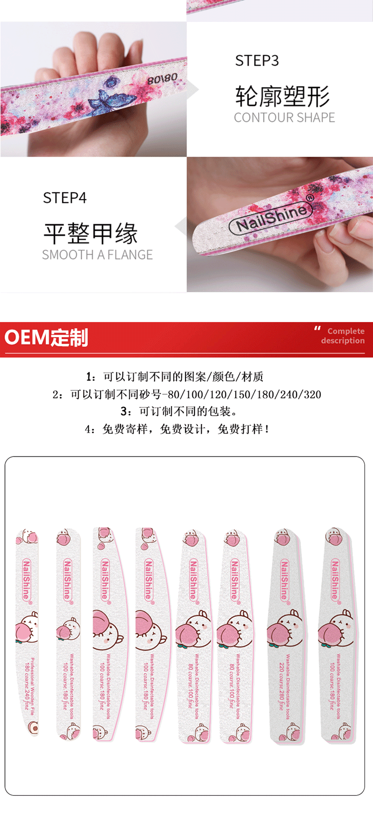 네일 샤인 크로스 보더 일본 사포 반달 네일 파일 인쇄 실제 갑옷 수리를위한 연삭 스트립