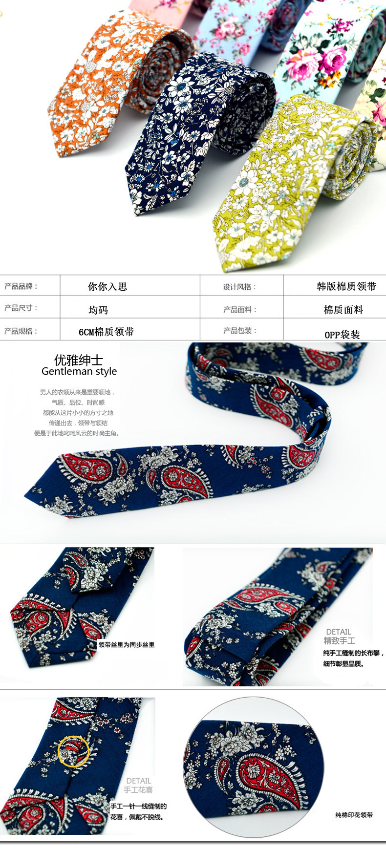 남자의 좁은 작은면 인쇄 넥타이 유럽과 미국 패션 캐주얼 칼라 신랑 최고의 남자 공장 성격 6cm스토어 가기