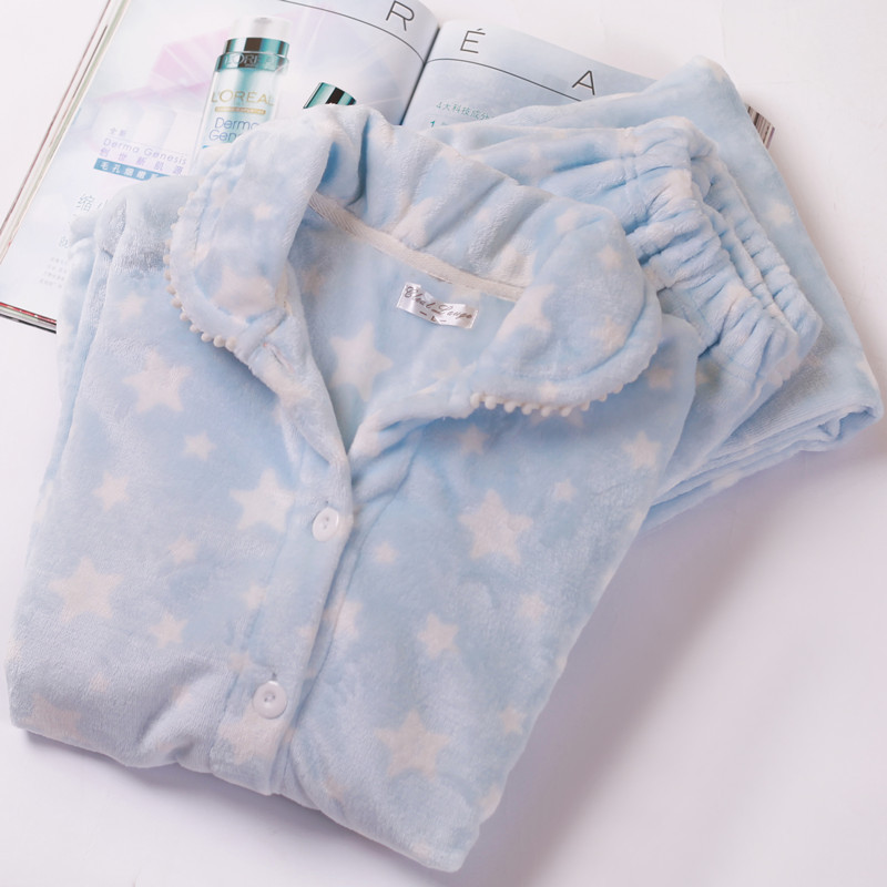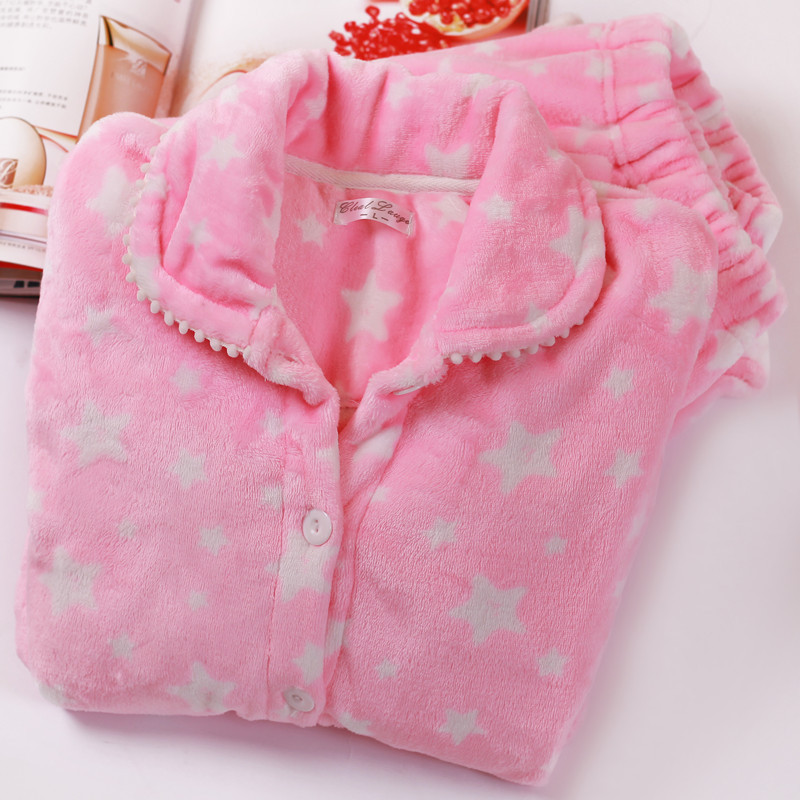 여성 세트 대외 무역 가을과 겨울 새로운 여성의 두꺼운 플란넬 긴 소매 바지 플란넬 파자마 홈 의류 세트