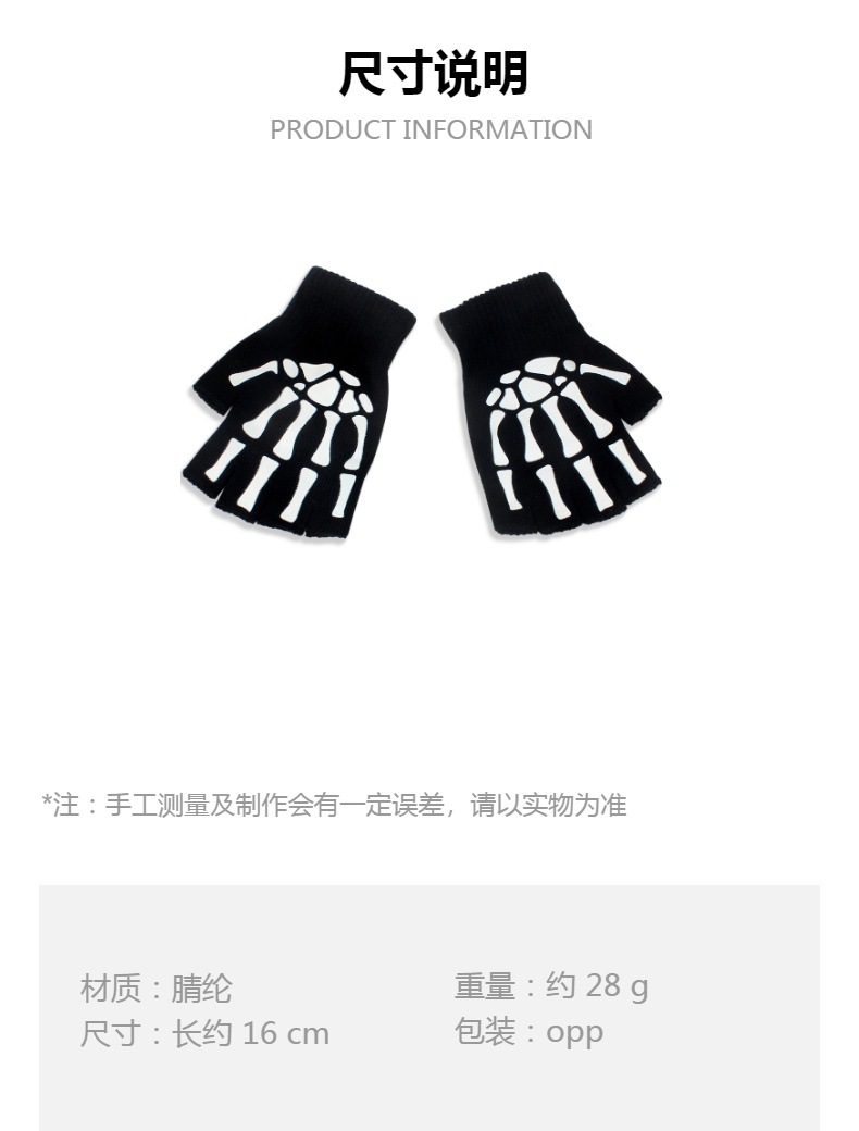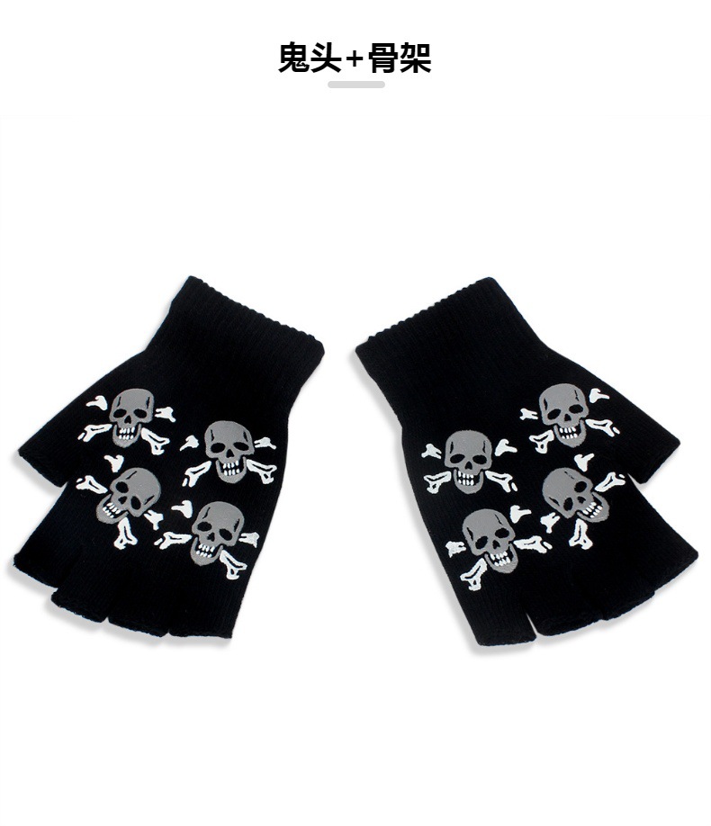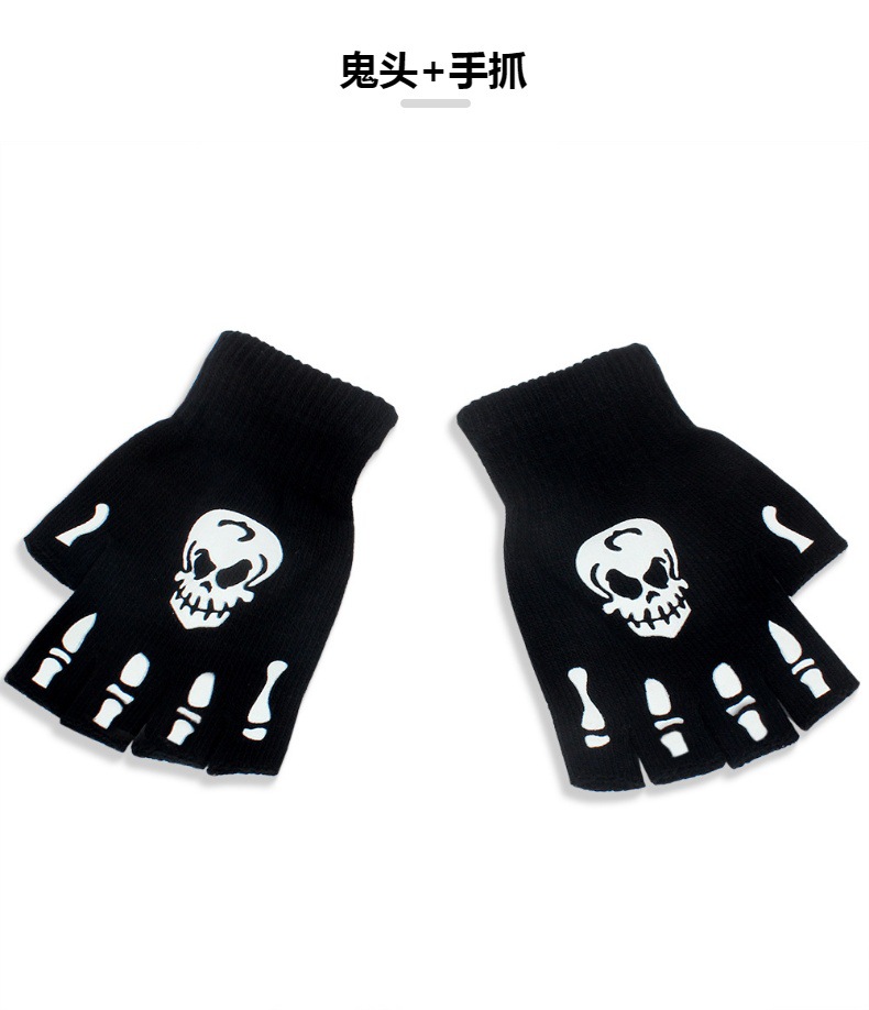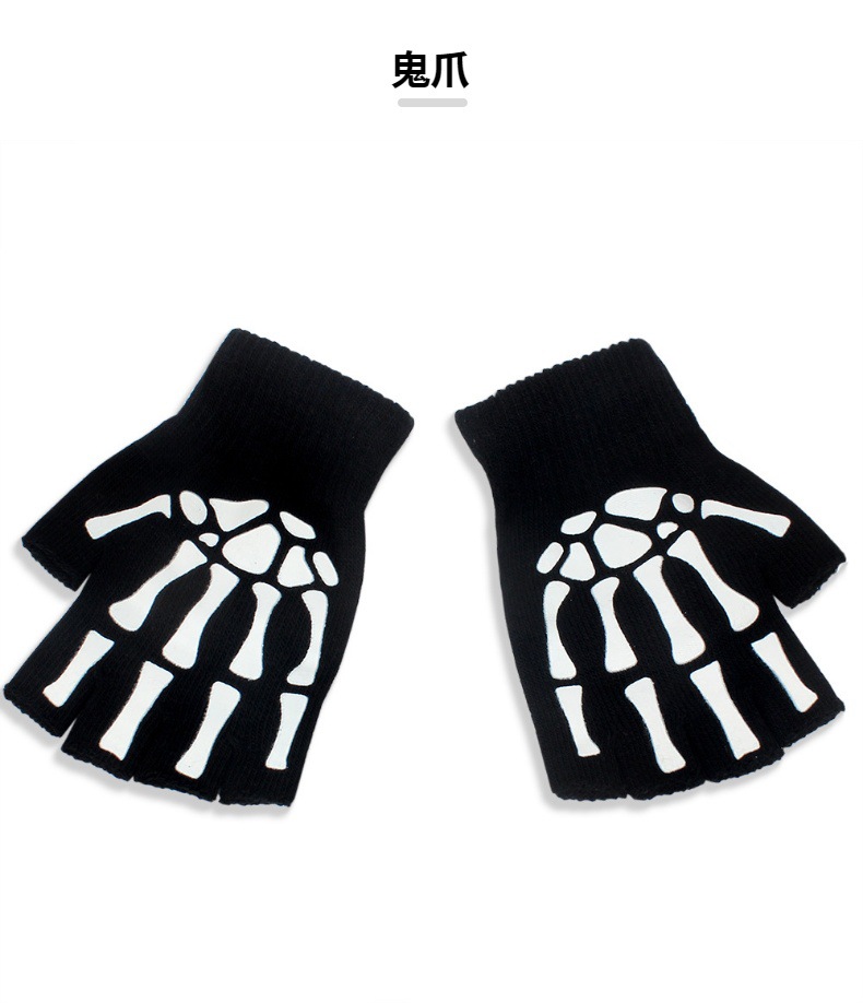 해골 승마 장갑 자전거 반 손가락 장갑 고스트 클로 반 손가락 니트 장갑 각질 제거 접착제 발톱 장갑