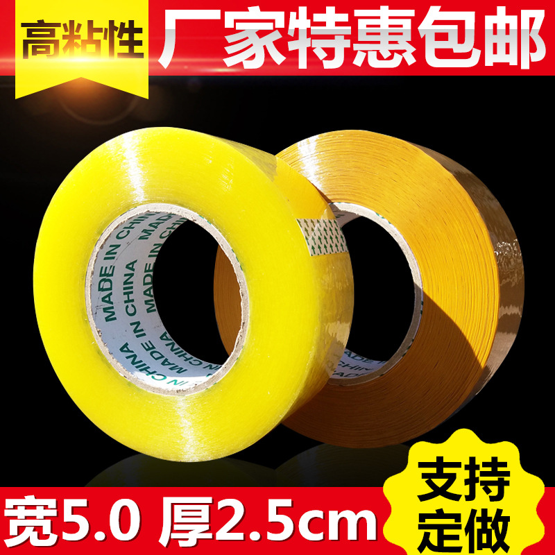 테이프 도매 폭 5cm 두께 2.5 투명 테이프 도매 전체 상자 포장 테이프 밀봉 접착 황색 테이프