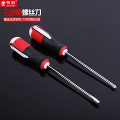厂家批发三色橡胶柄磁性螺丝批起子防滑螺丝刀一字十字改锥