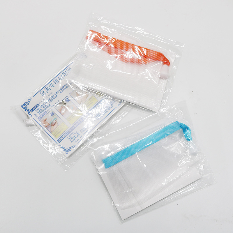 제조 업체 공급 15*10cm 수제 비누 거품 그물 클렌징 비누 거품 그물 더블 레이어 벨트 로프를 걸 수 있습니다