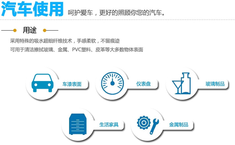 *独具去污洁尘功能:使用该产品擦拭机油类脏物后,用一般洗涤方法即可清除,表面不留痕迹,用其清洁玻璃,表面不掉毛絮,让您爱车更光洁更舒心。
