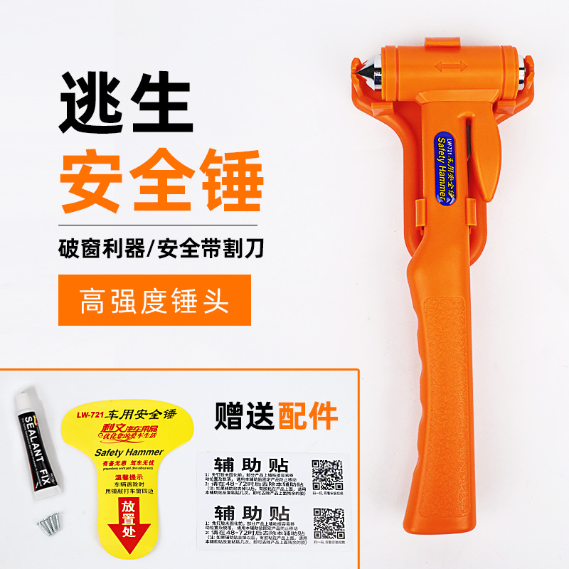 2.尖锐牢固的锤子采用优质碳钢和工程塑料制作,超常的手把在关键时刻更能实现一锤破窗逃生的目的。