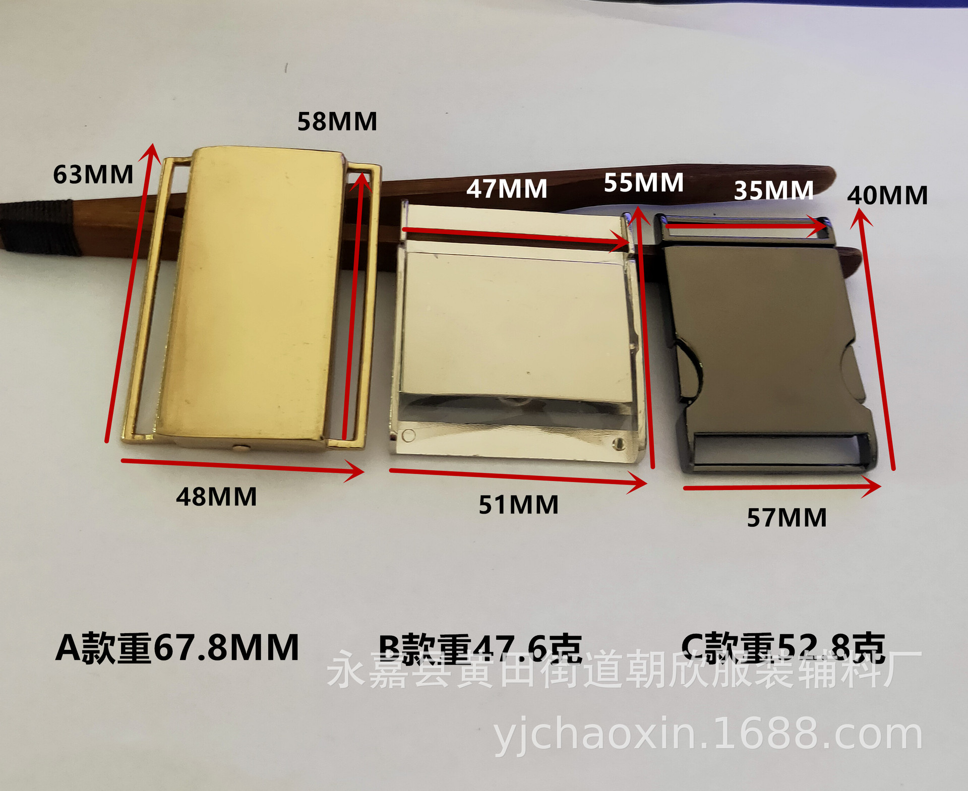 本公司专业生产服饰配件四合扣,五爪扣,气眼,工字扣,撞钉,按扣,吊钟,对扣,皮标,皮块,猪鼻扣,皮拉头,皮带,绣标,鞋扣,调节扣,大别针,三档扣等锌合金配件、服装辅料。