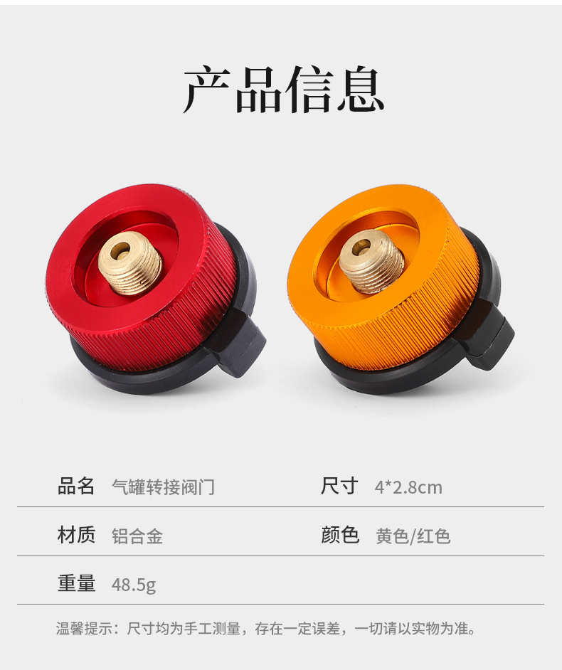 用于标准扁气罐和长气罐的转接。适合将长气罐转接到各种标准炉头使用。