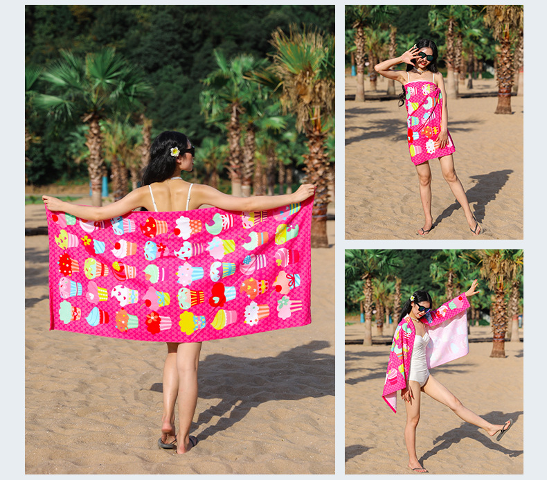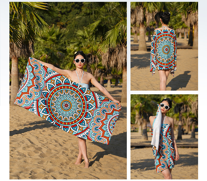 아마존 극세사 비치 타올 흡수성 스포츠 타올 반응성 인쇄 속건 수영 목욕 타올 성인스토어 가기