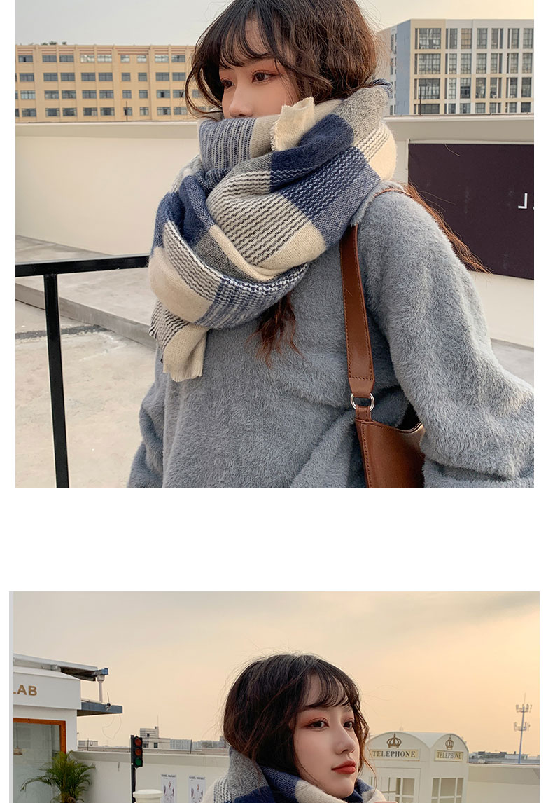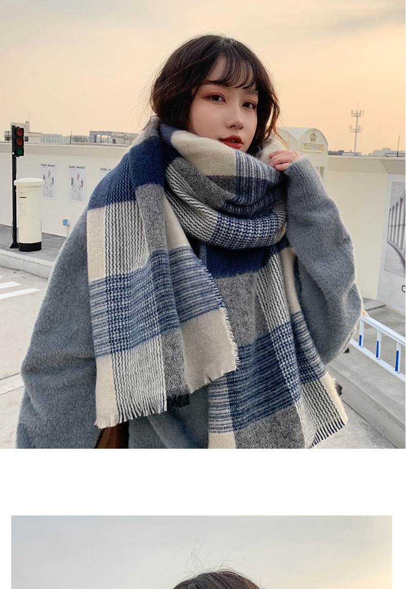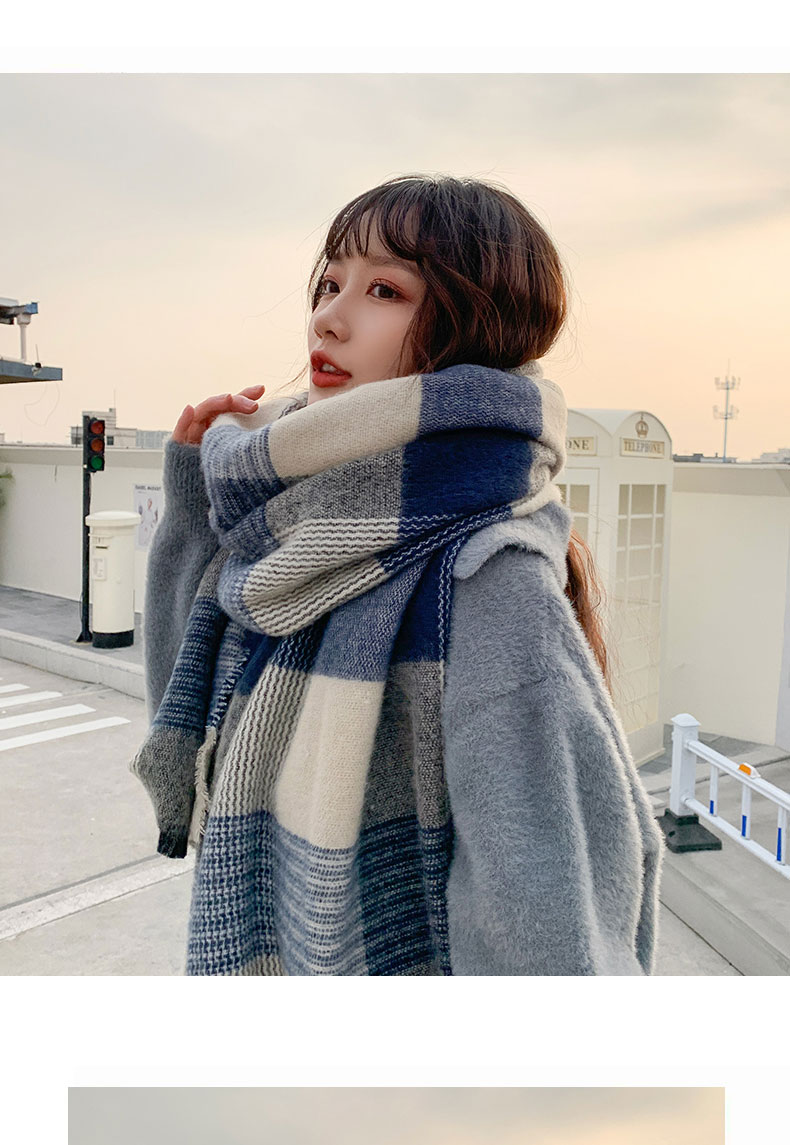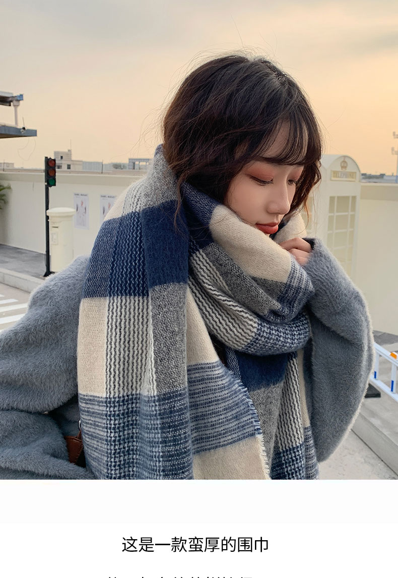 모조 캐시미어 스카프 여성용 겨울 한국 스타일 학생용 일본식 체크무늬 스카프 두꺼운 보온 2024 신상 레드스토어 가기