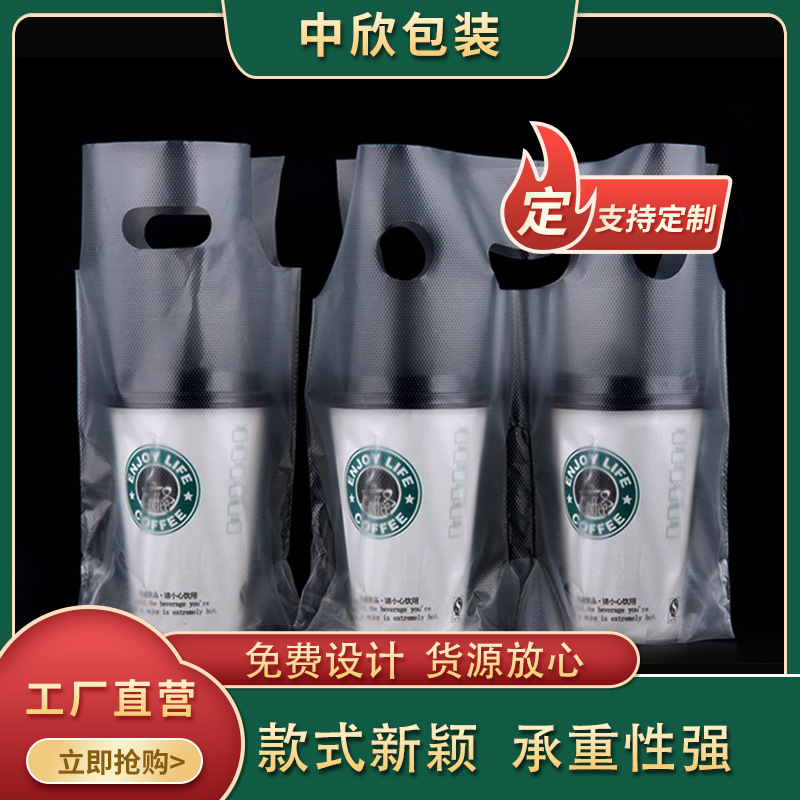 밀크티 봉투 포장 가방 단일컵 이중컵 커피 테이크아웃 휴대용 반투명 일회용 음료 플라스틱 가방스토어 가기