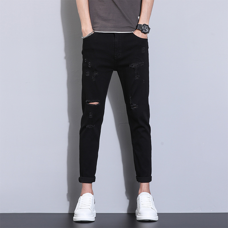 남자 스트레치 한국 스타일 스키니 진 학생 ANSICARD 퓨어 화이트 슬림 룩 펜슬 팬츠 520스토어 가기