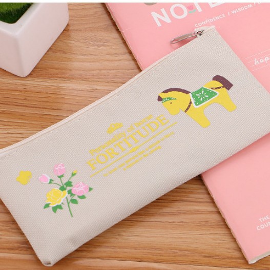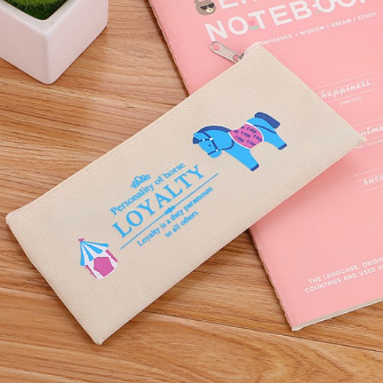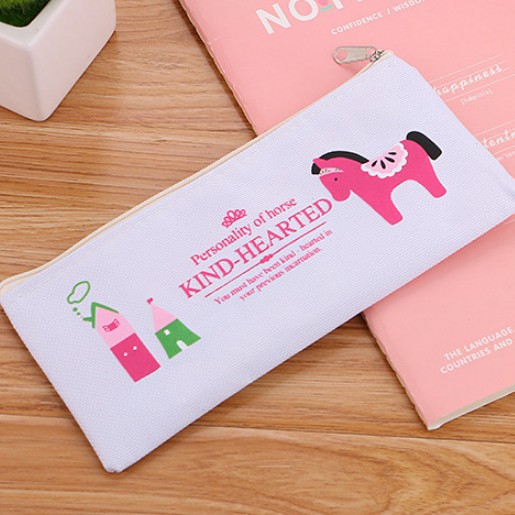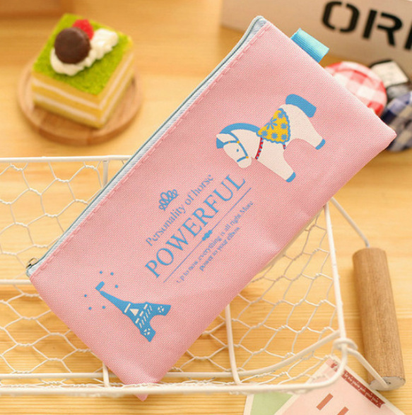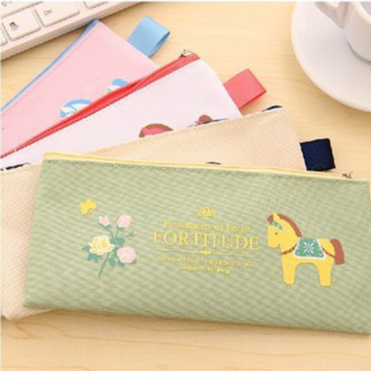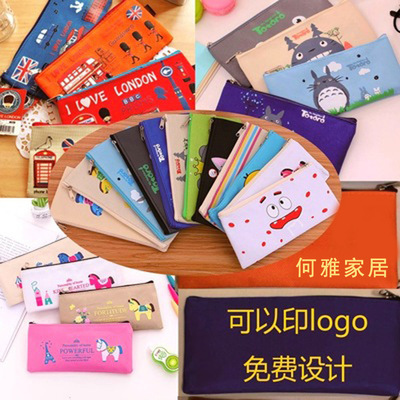 日韩手提卡通笔袋大容量布文具袋可爱收纳袋女来图印logo铅笔盒