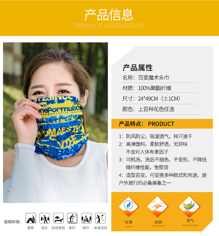 스포츠 다기능 매직 스카프 야외 자외선 차단제 원활한 헤드 스카프 남성용 및 여성용 얼굴 스카프 자전거 통기성 속건 스카프