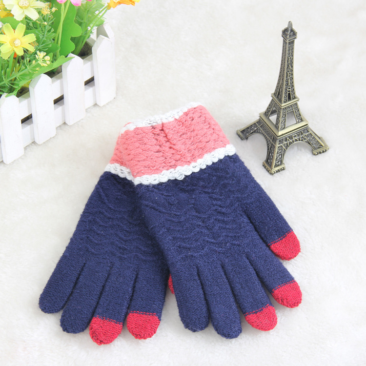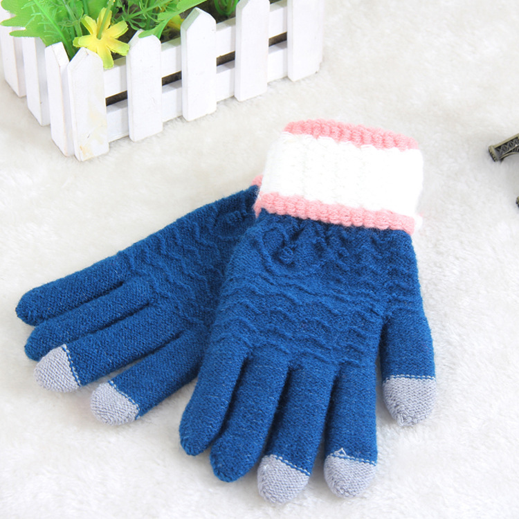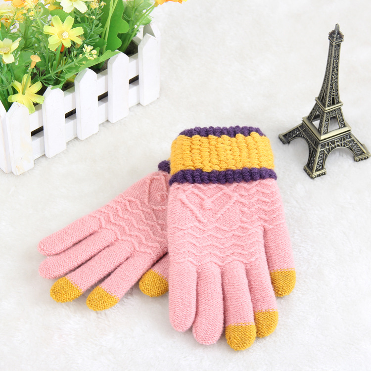 겨울 터치 스크린 니트 양모 손가락 장갑 숙녀 기모 두꺼운 따뜻한 귀여운 학생 제조 업체의 한국어 버전