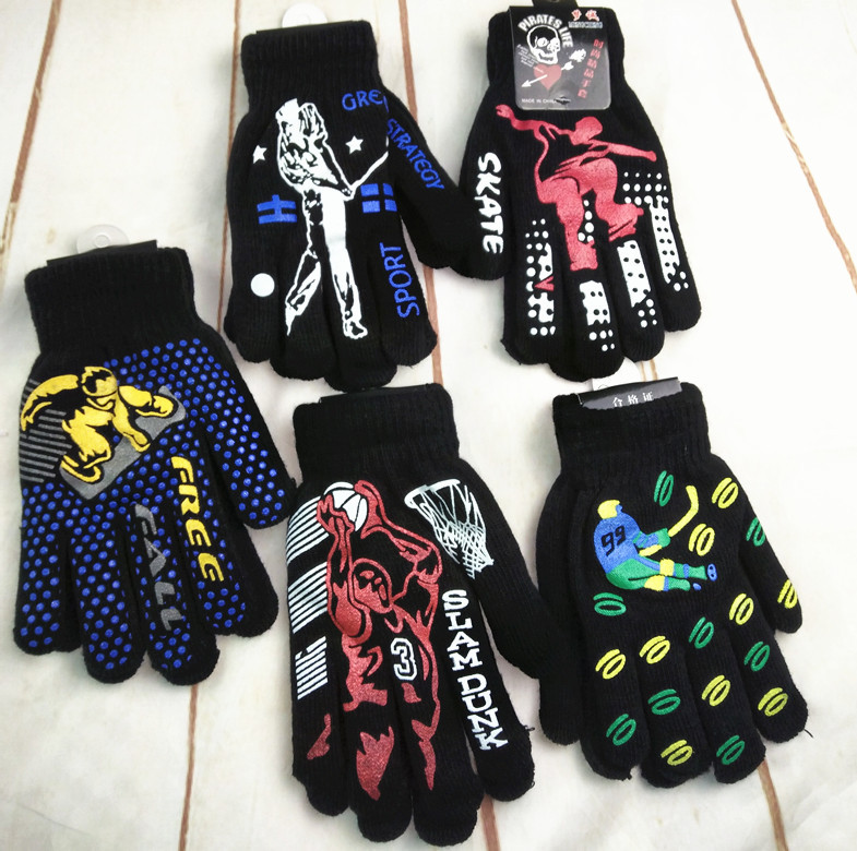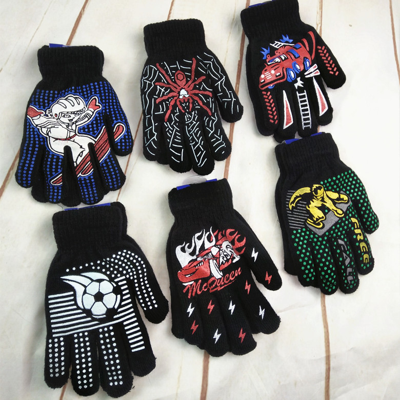 겨울 기모 두꺼운 따뜻한 장갑 아기 어린이 이중 인쇄 장갑 학생 니트 장갑 도매 한국어 버전