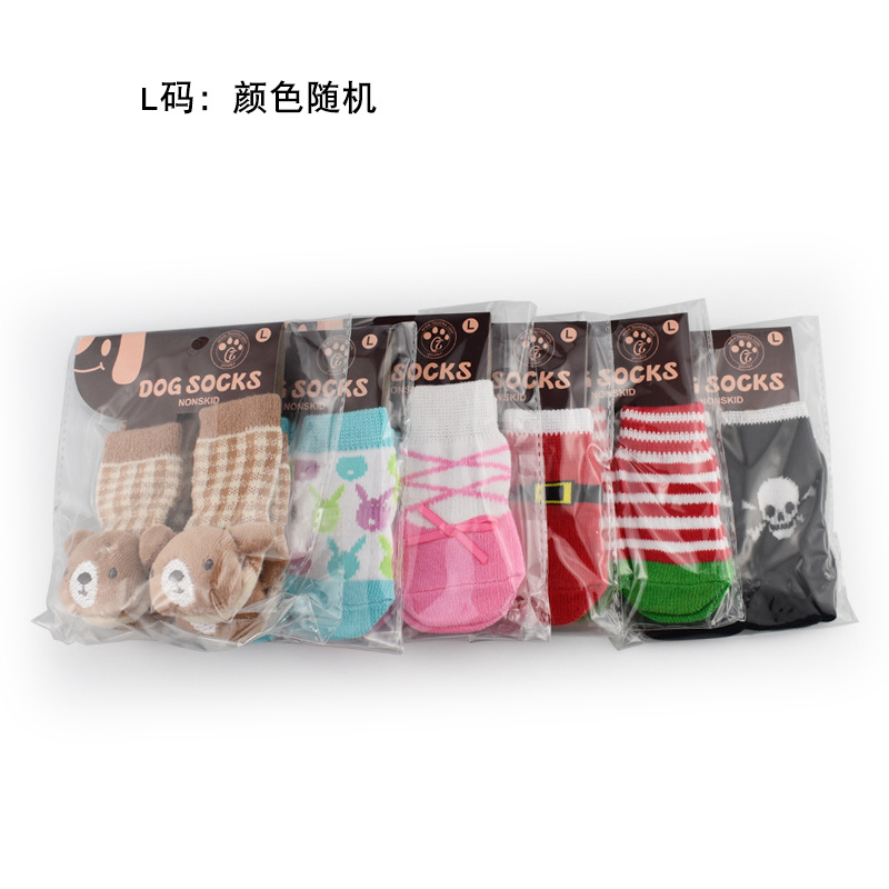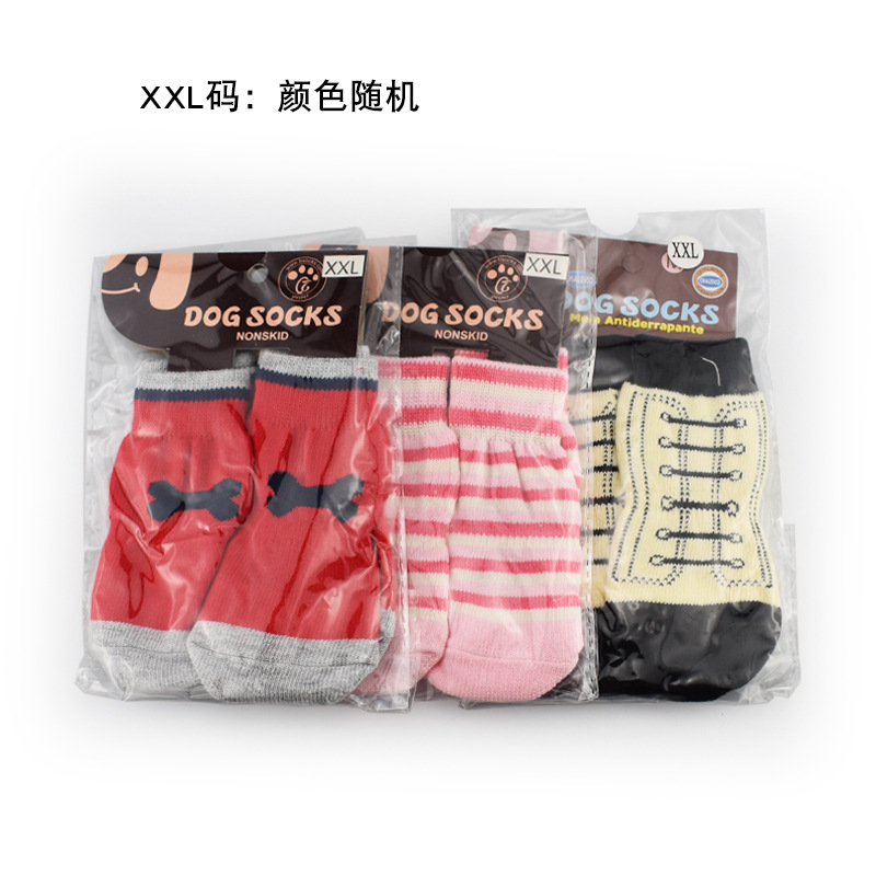 商品描述:小狗宠物袜子-采用棉绳制作.适用与中小型狗,让狗狗在可以在家里自由行走,并且不会挂花地板.同时起到保暖的作用.配合时尚的设计,颜色的艳丽,可以增狗喜爱的程度.很快就会成为狗狗喜爱的玩具之一.是宠物玩具用品首选之一