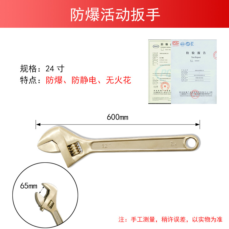 폭발 방지 조정 가능한 렌치 알루미늄 구리 합금 6-24 인치 비 스파링 조정 가능한 렌치 정전기 방지 조정 가능한 렌치