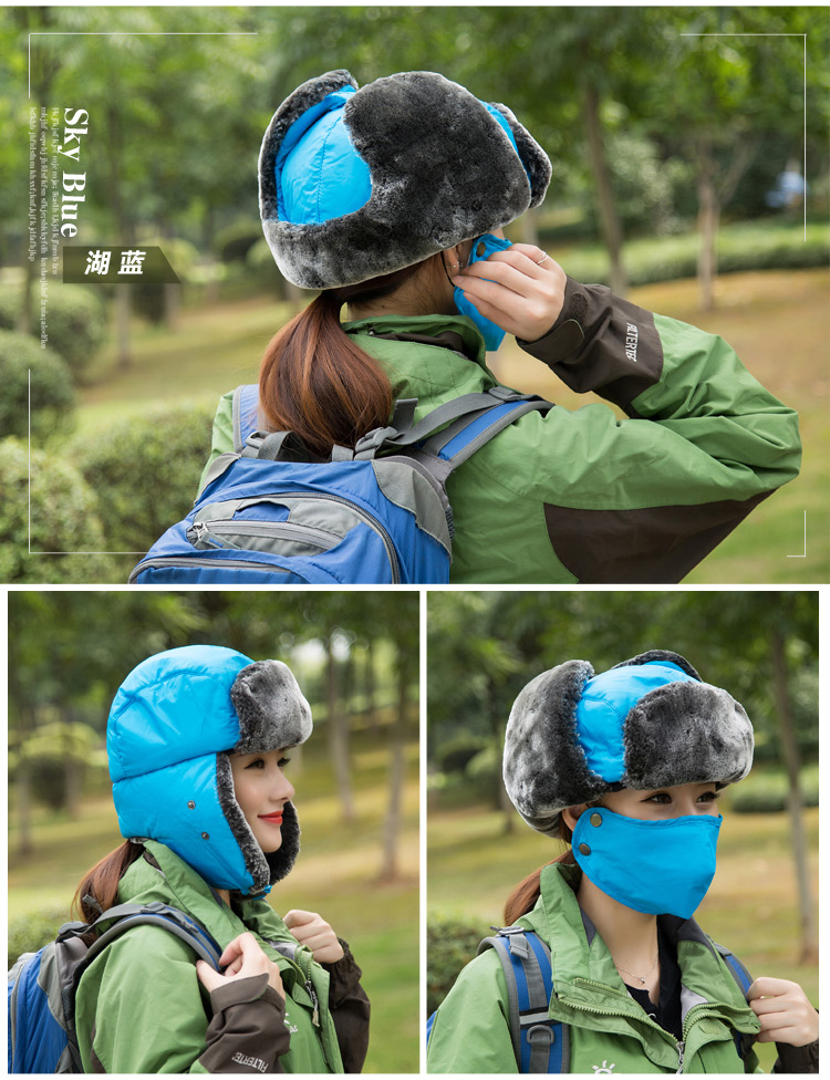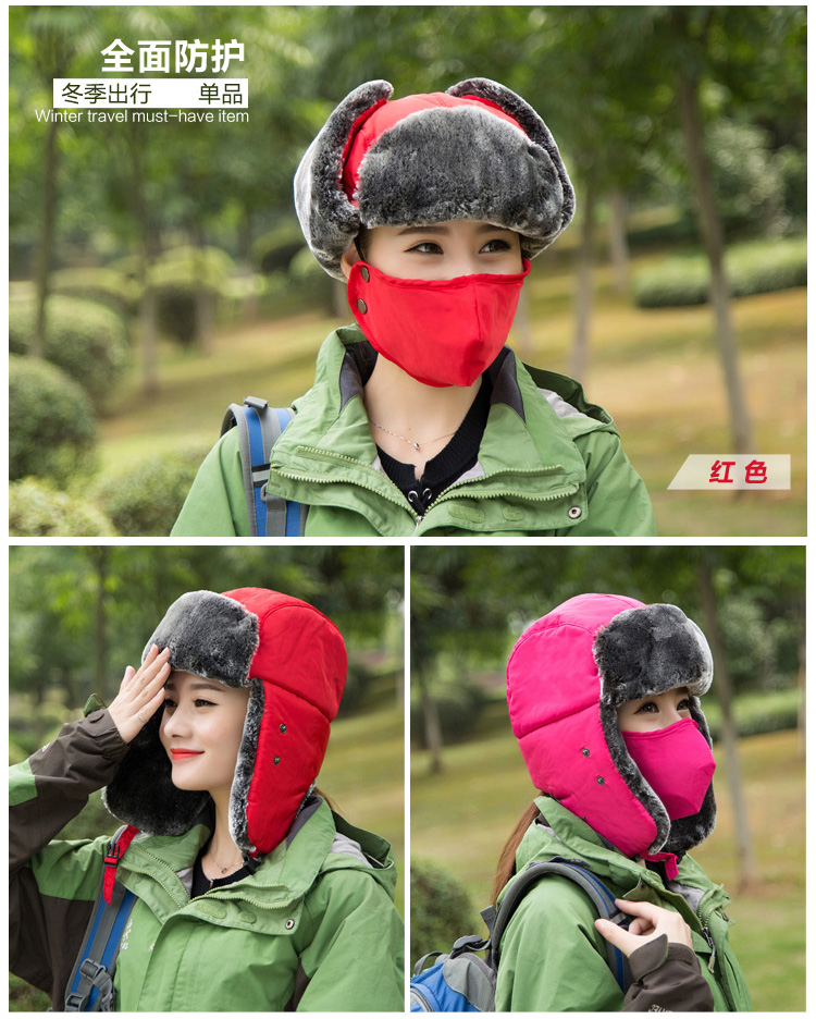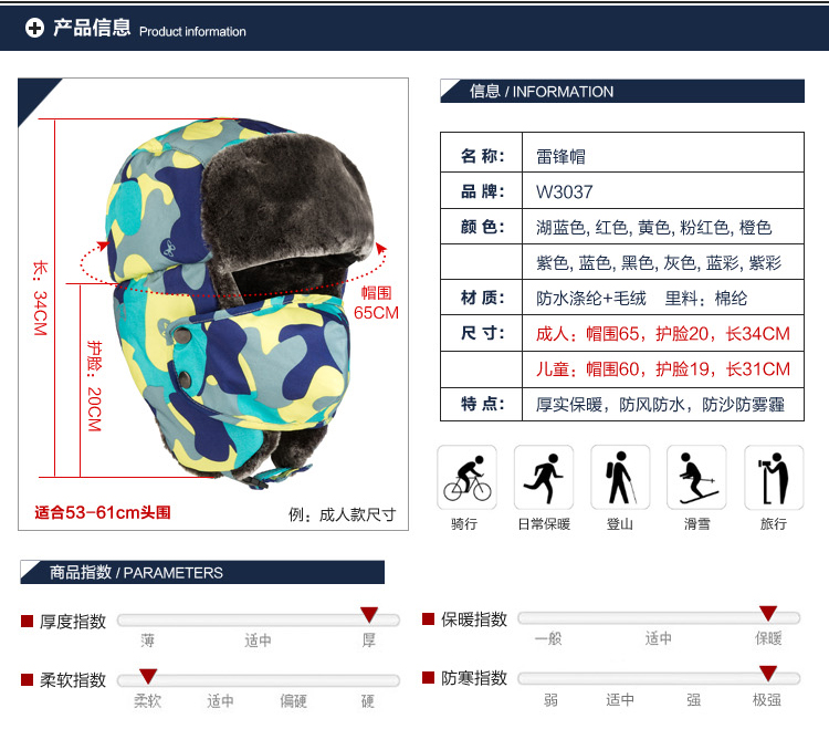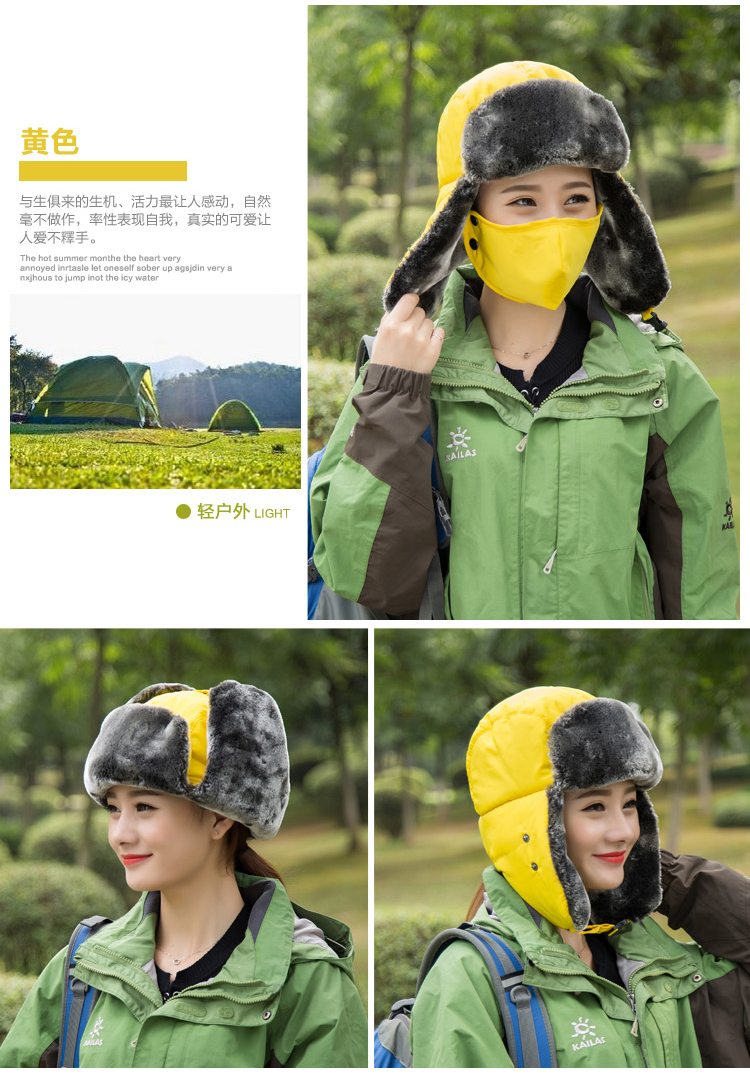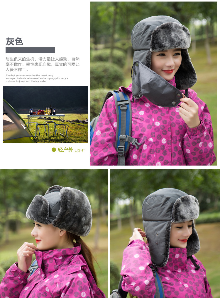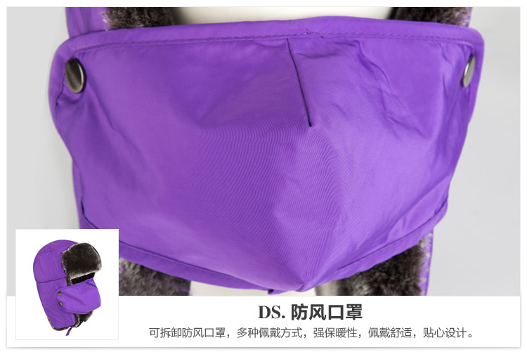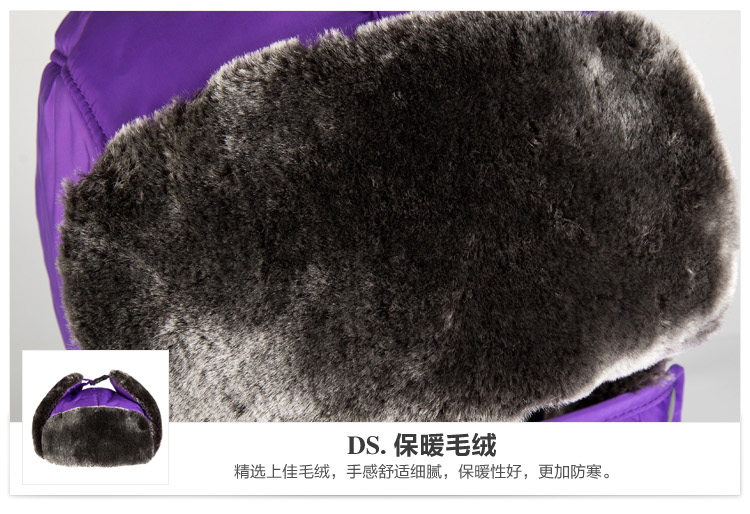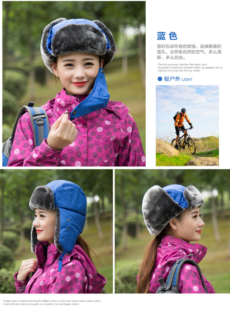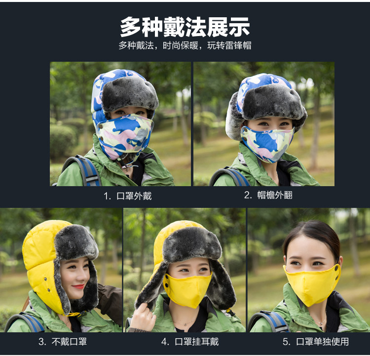 新款雷锋帽,采用防水涤纶布料+优质毛绒(不掉毛)中间加棉制作而成,特别保暖 防风 防水,配有加棉口罩 可放风沙 防雾霾 是冬季户外运动 骑车保暖的不二之选 ,男女老少都可佩戴哦!