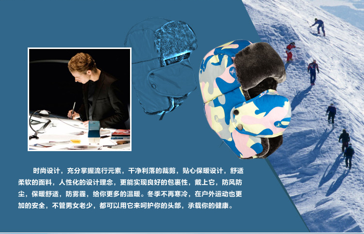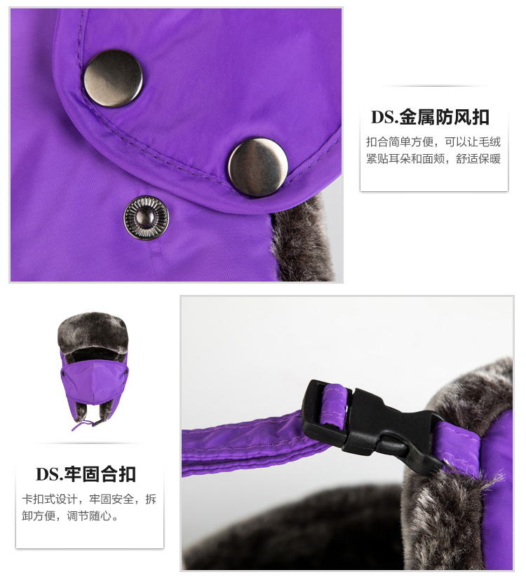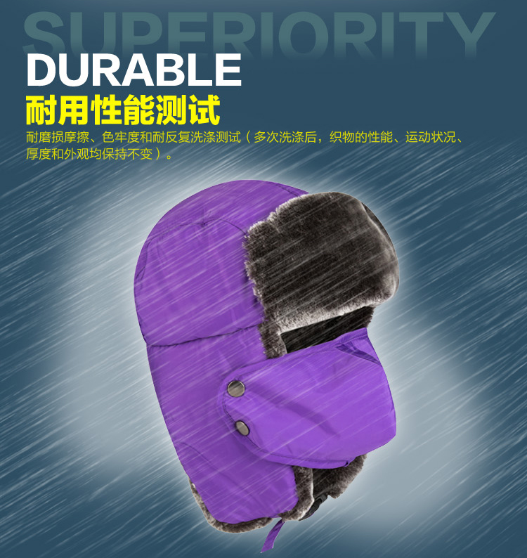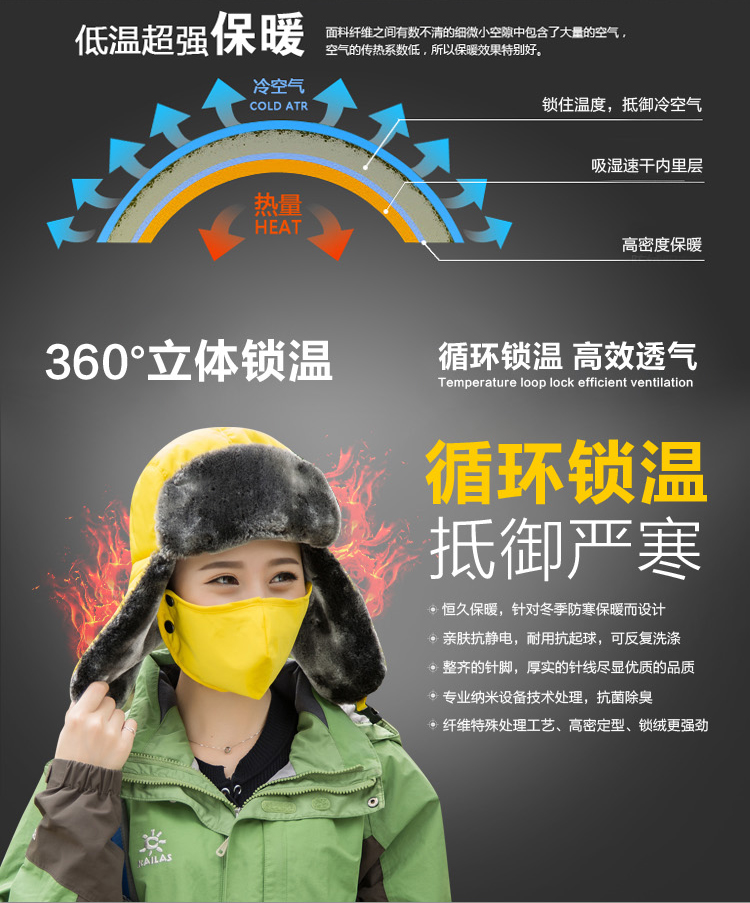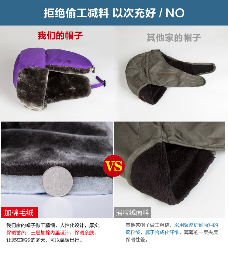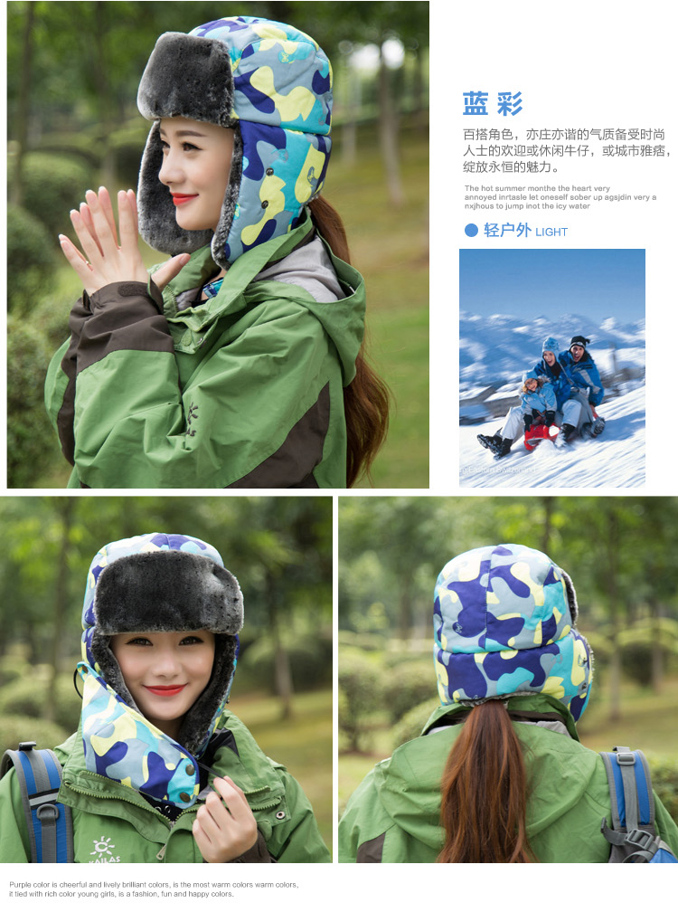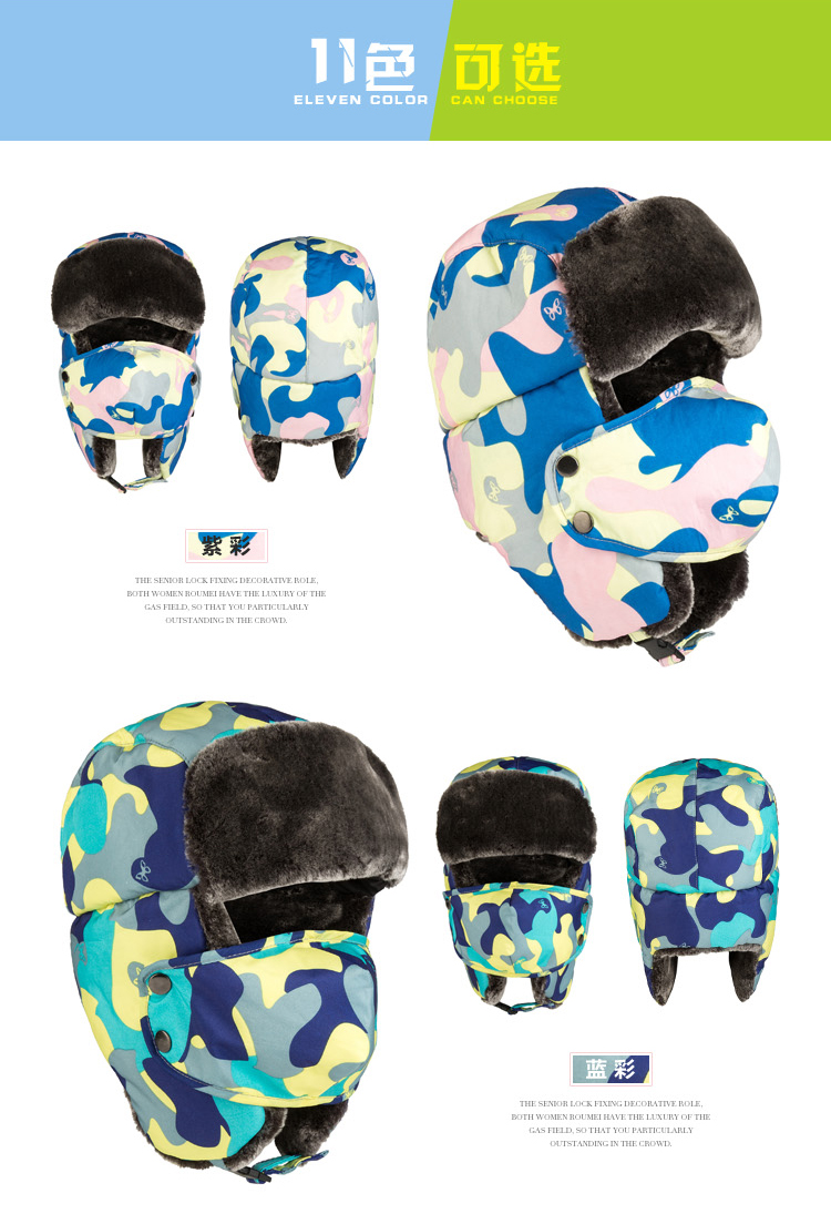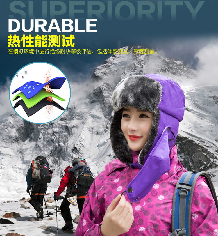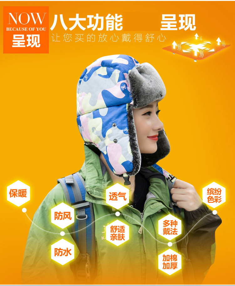 新款雷锋帽,采用防水涤纶布料+优质毛绒(不掉毛)中间加棉制作而成,特别保暖 防风 防水,配有加棉口罩 可放风沙 防雾霾 是冬季户外运动 骑车保暖的不二之选 ,男女老少都可佩戴哦!