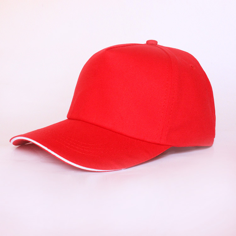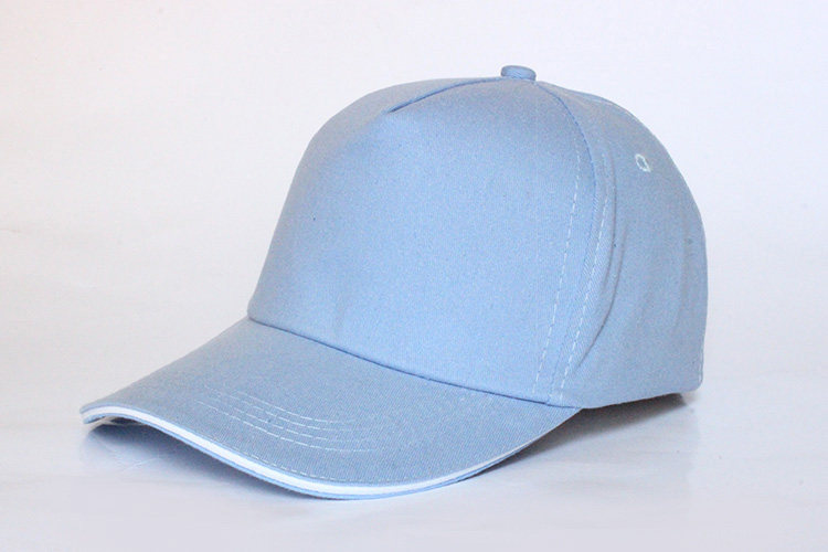 此款5片三舌帽,采用纯棉面料,吸汗透气,不褪色,洗涤后不变形,粘合衬采用纯棉烫浆,工序复杂。属于精品帽,三明治帽檐,造型美观大方,帽顶打4孔,帽檐压4线。