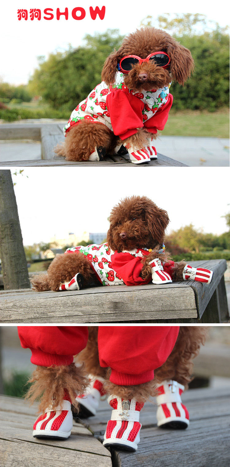 仿皮材质加透气孔,防水防滑软底,多种颜色选择,可作雨鞋穿,狗狗外出必备扮酷行头!