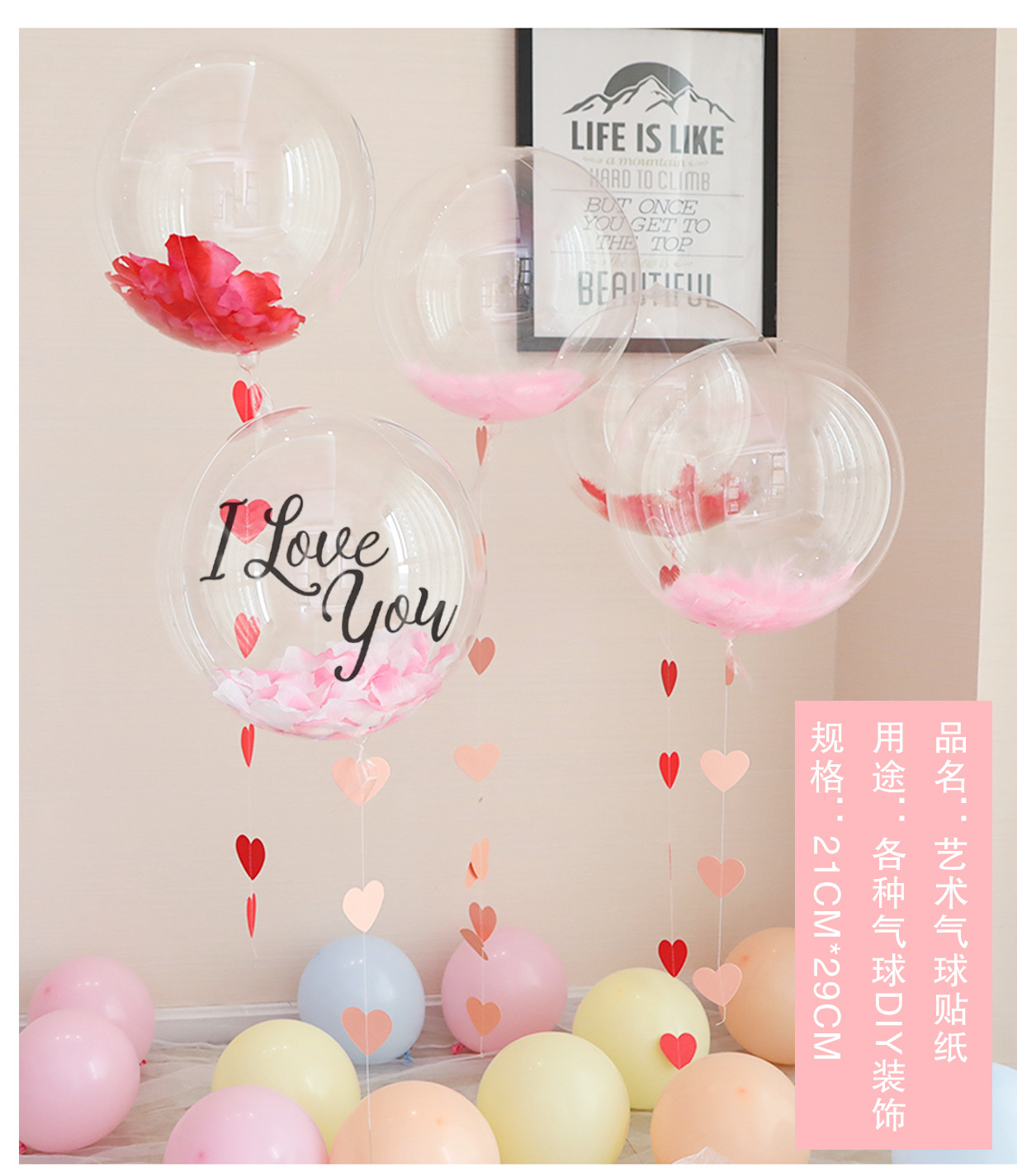 도매 웨딩 영어 풍선 스티커 보보 볼 투명 생일 풍선 스티커 황금 생일 축하 소년 스티커스토어 가기