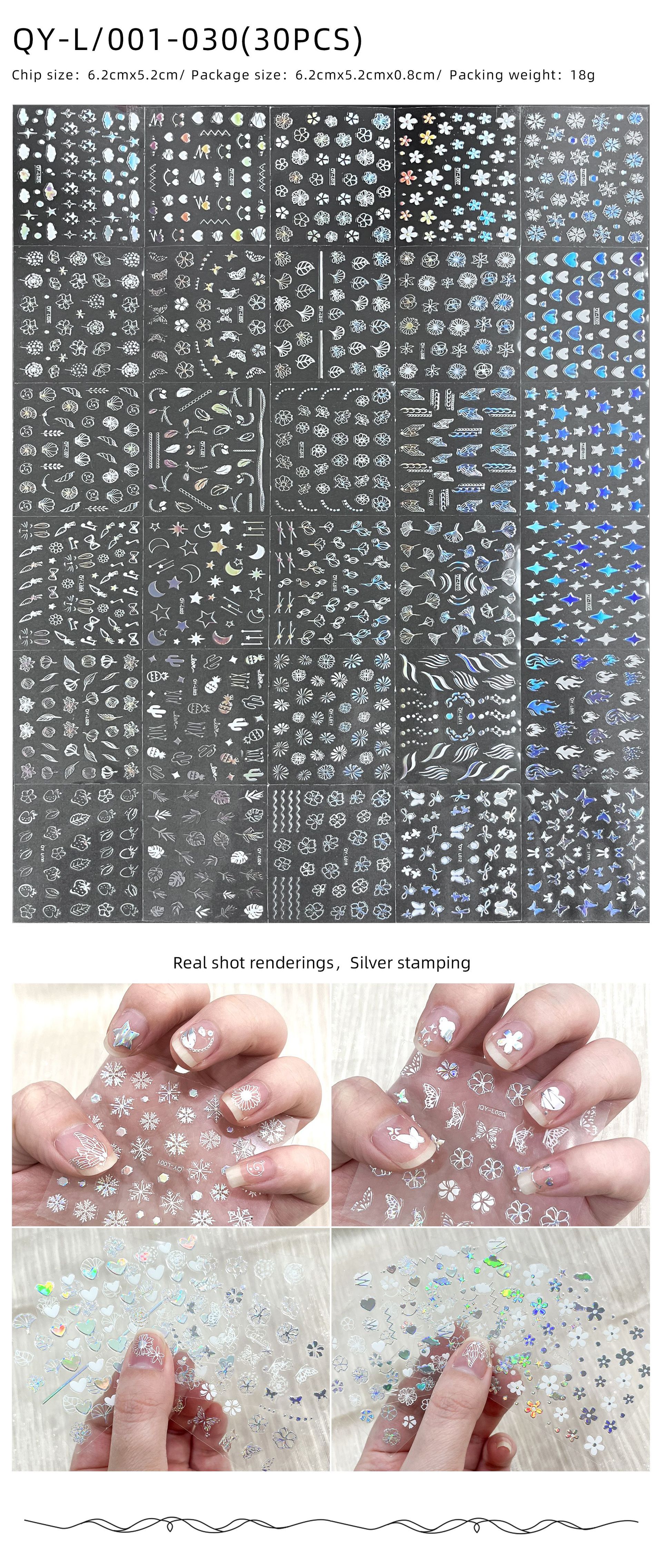 【名称】60/30张不重复 3D指甲贴纸花套装