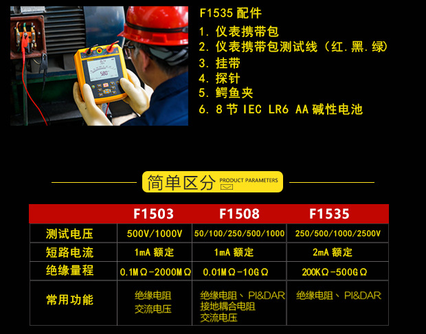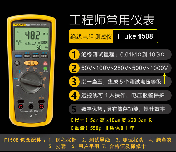 플루크 플루크 F1508 절연 저항 테스터 디지털 흔들림 테이블 F1503 F1535 MEGOHMMETER F1587