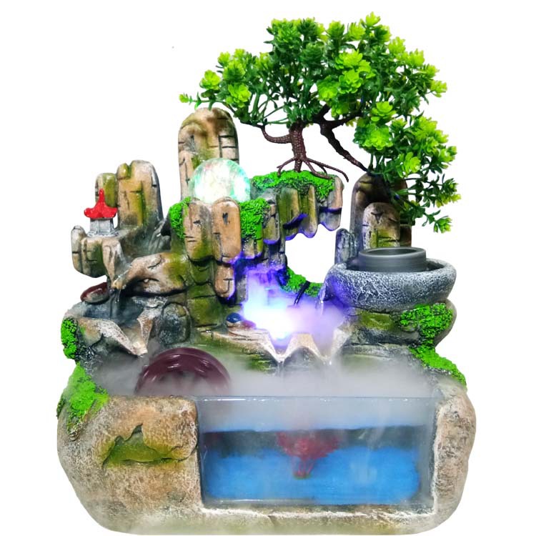 Rockery 유리 어항 수지 물 분수 풍수 바퀴 가정 인테리어 장식 데스크탑 공예 물 풍경 장식품스토어 가기