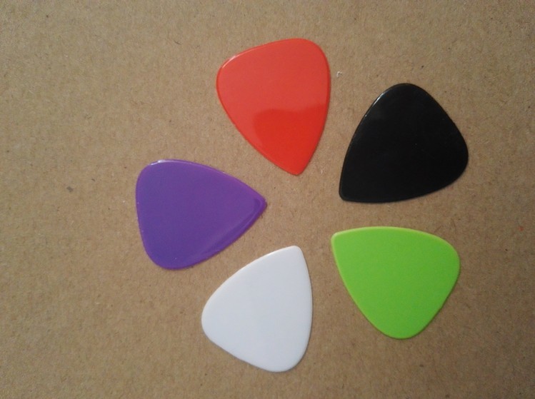 赛璐璐拨片是由高质量的赛璐璐片冲切而成、拨片边缘光滑、使用寿命长、磨损度小、有多种颜色,每种颜色三种厚度。 拨片的英文pick(匹克),它是用于代替手指拨弦的一种工具。