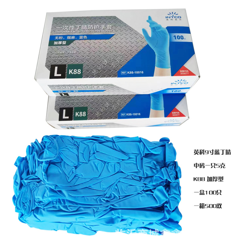 Yingke 일회용 니트릴 장갑 9 인치 12 인치 블루 표준 두꺼운 내유성 미끄럼 방지 보호 장갑