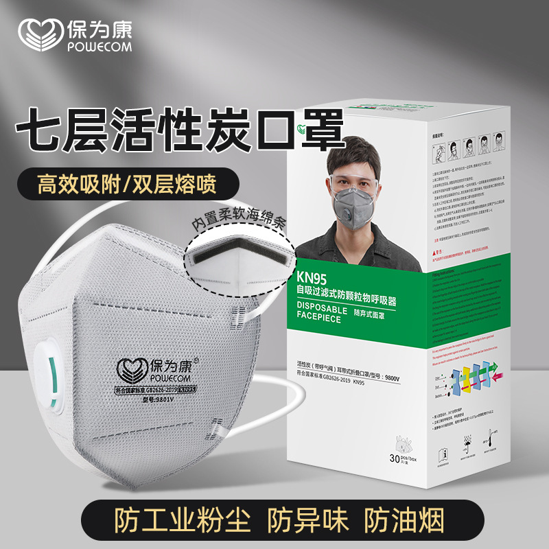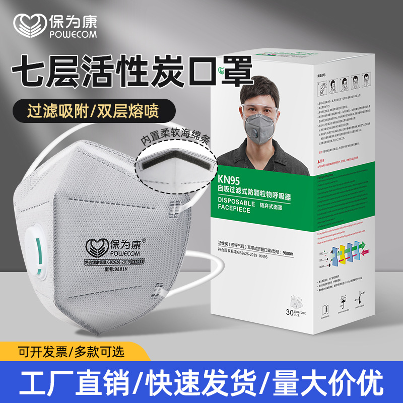 보웨이캉 KN95 호흡 밸브 마스크 통기성 7중 활성탄 장식 공사 석탄 산업 먼지 마스크 도매스토어 가기