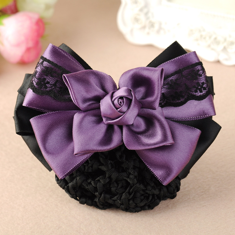 【材 质】:结实加密粗网或换细网,10cm单卡双弹夹子,高档黑纱花边、涤沦带玫瑰花。