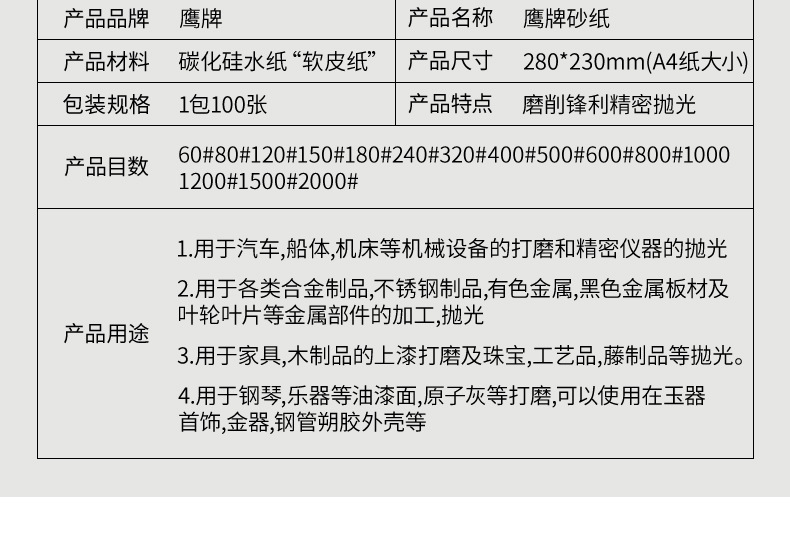 厂家批发磨具磨料60-2000目鹰牌砂纸 耐水沙纸打磨水磨抛光细砂纸