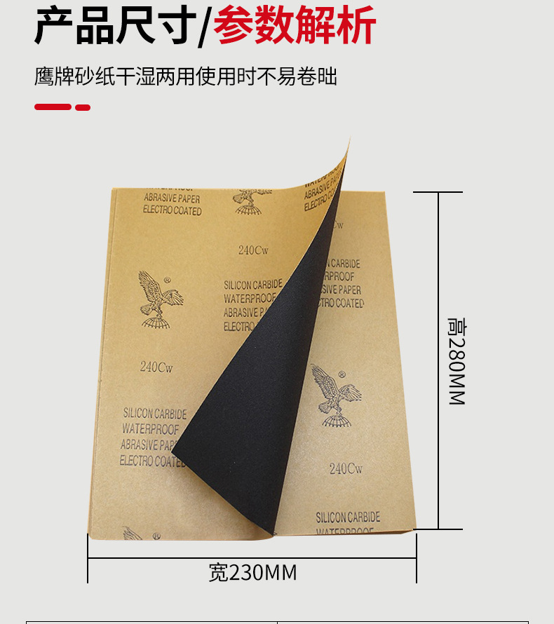 厂家直供耐水鹰牌砂纸批发60#-2000目干湿两用汽车打磨抛光碳化硅