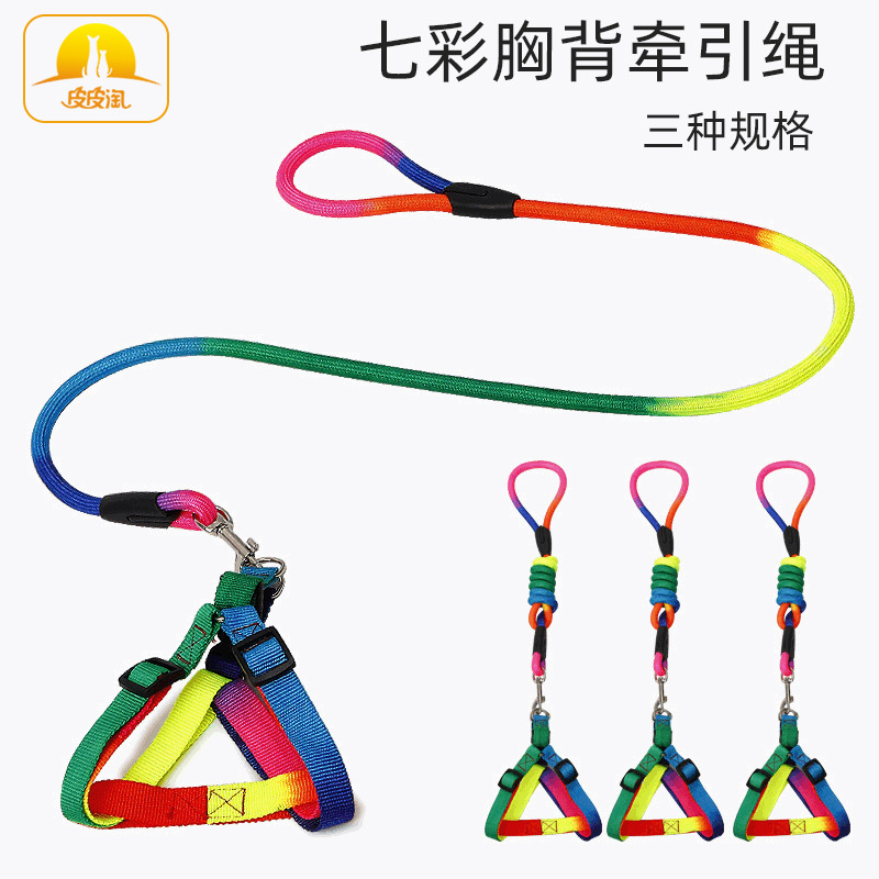 现货批发皮皮淘优质狗绳 1.0cm小号七彩圆绳胸背式狗狗牵引绳