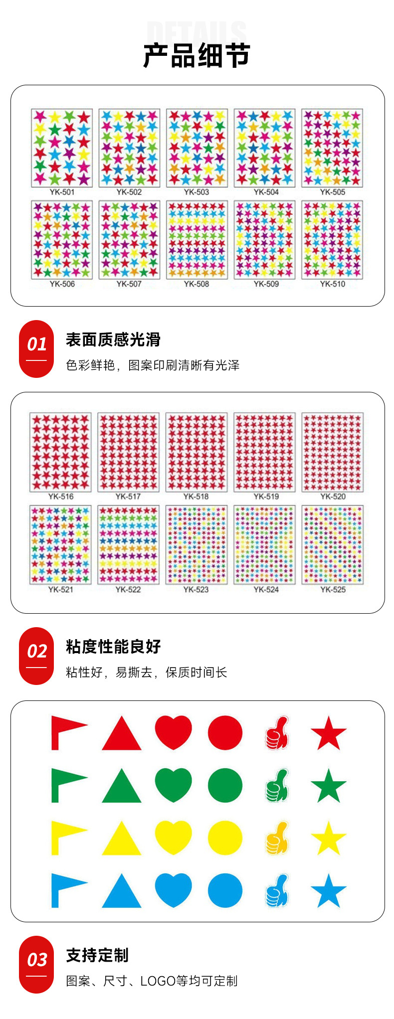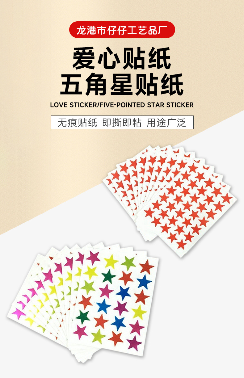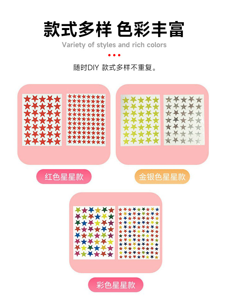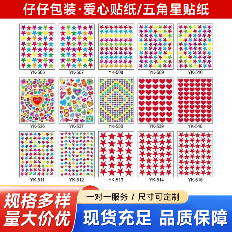 컬러풀한 오각별 보상 스티커, 실버 골드 별 모양 스티커, 발렌타인 데이 하트 스티커 도매스토어 가기