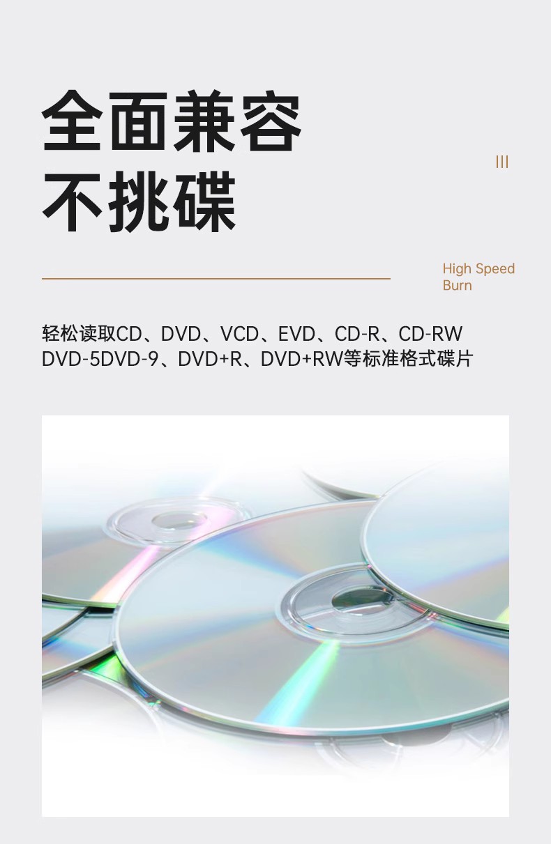 支持光盘格式:DVD-ROM,DVD-R,DVD+R,DVD-RW,DVD-R DL,CDA,CD-ROM,CD-R,VCD,SVCD,CD-RW