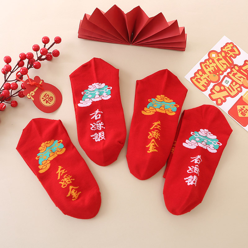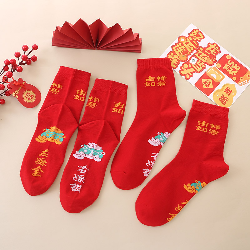 Tianbaolaier 빨간 양말 여성용 빨간 양말 남성용 새해 양말스토어 가기