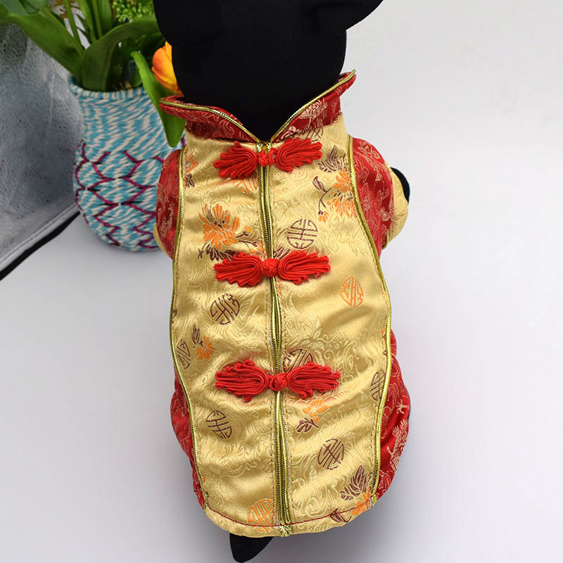 厂家直销2025新款狗狗衣服秋冬唐装 夹棉宠物拜年新年装富贵猫衣 |