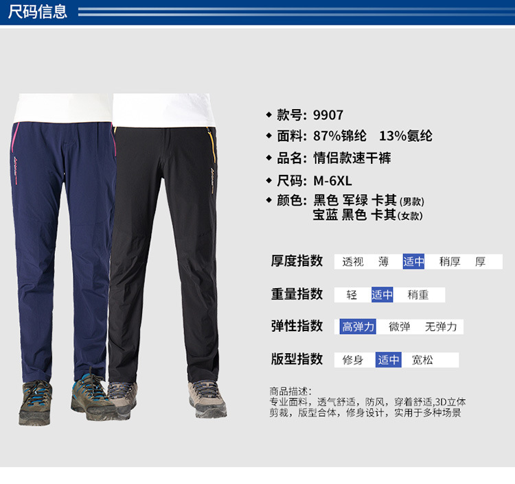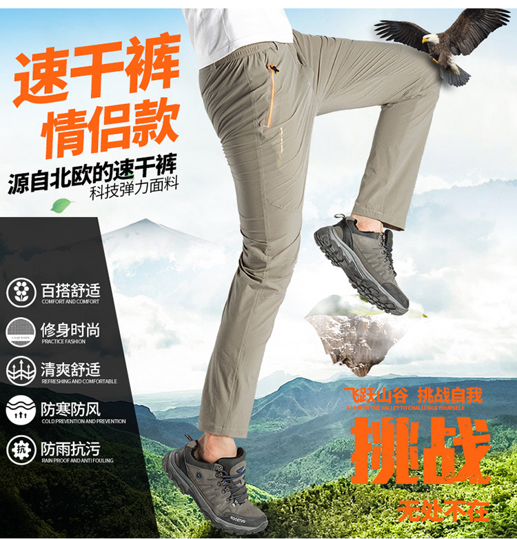 AliExpress 여름 새로운 대외 무역 남성 러시 바지 커플 야외 남성 속건 바지 플러스 사이즈 소프트 쉘 등산 바지