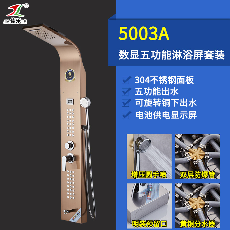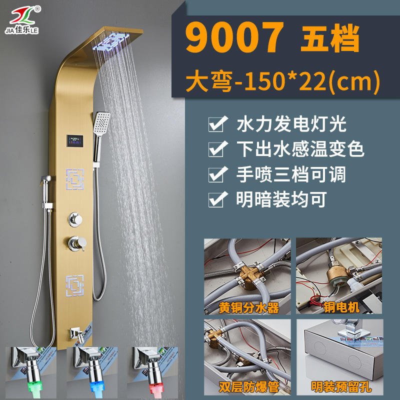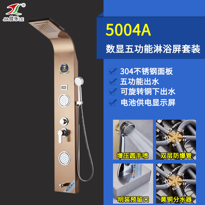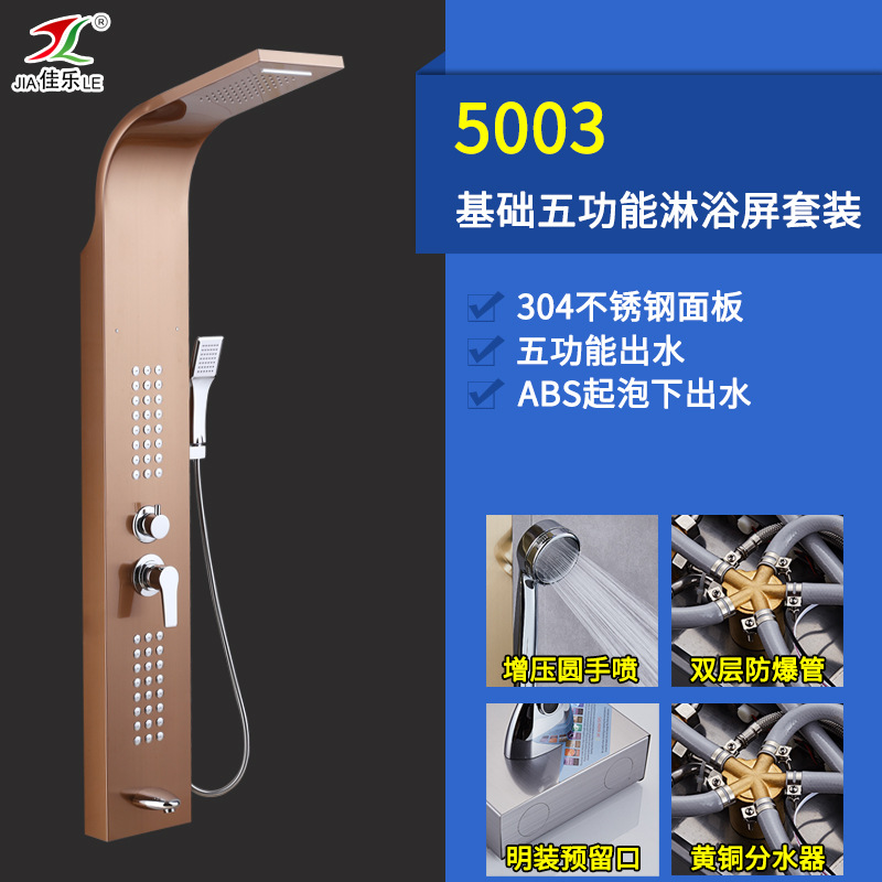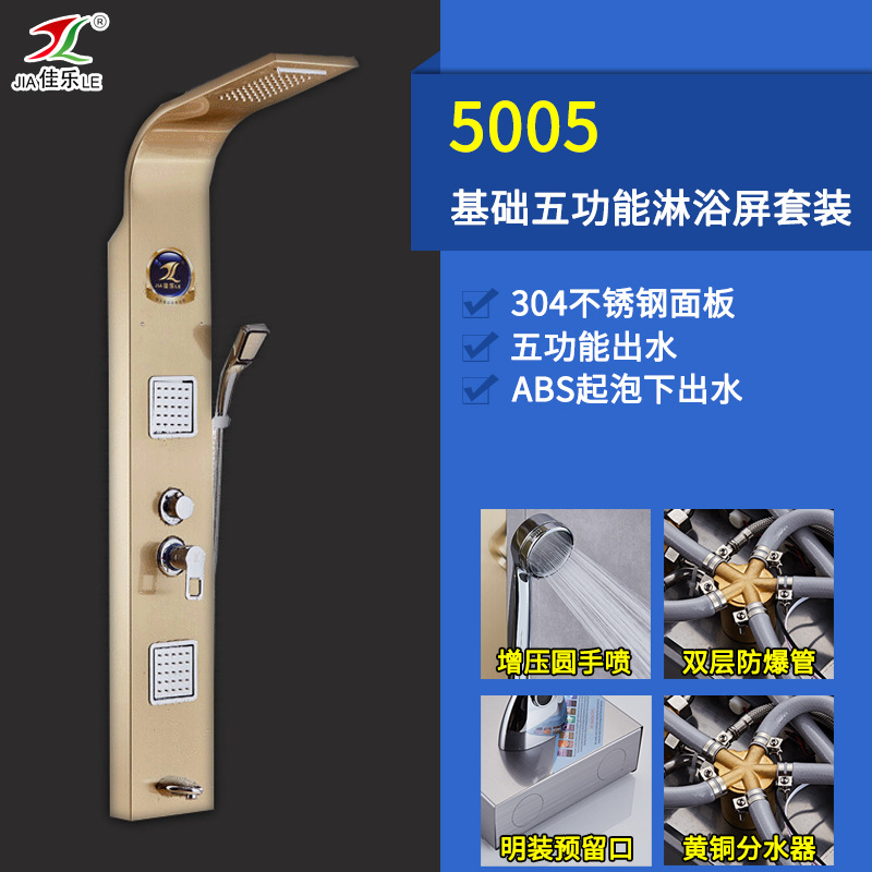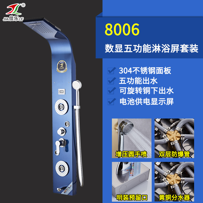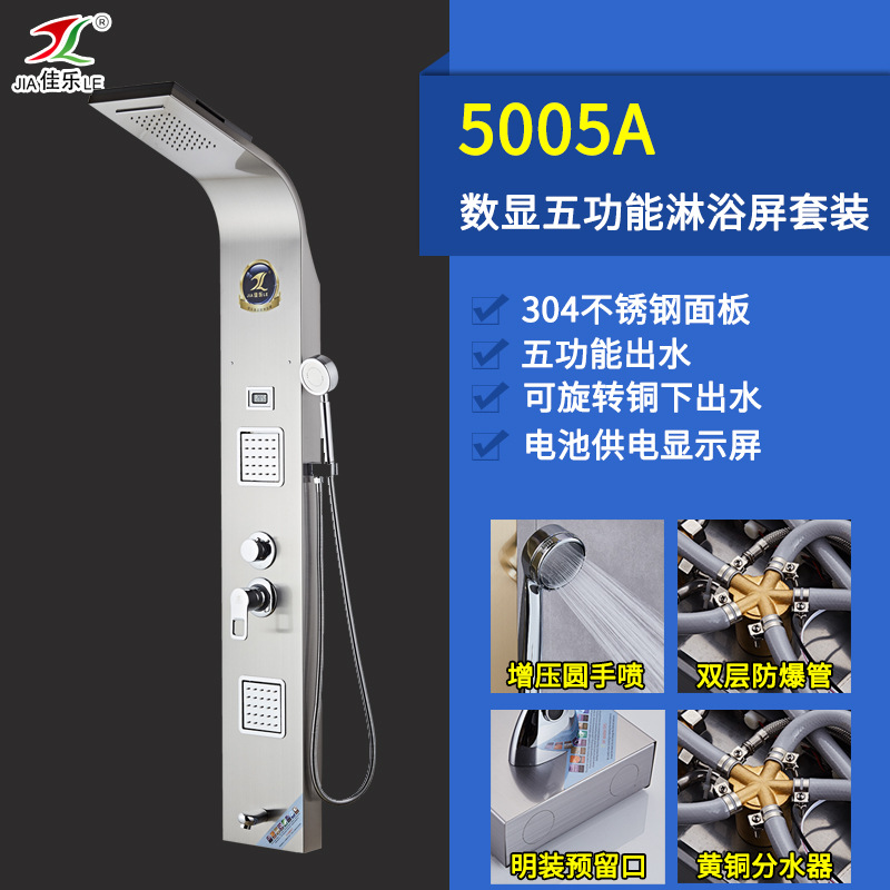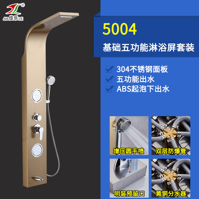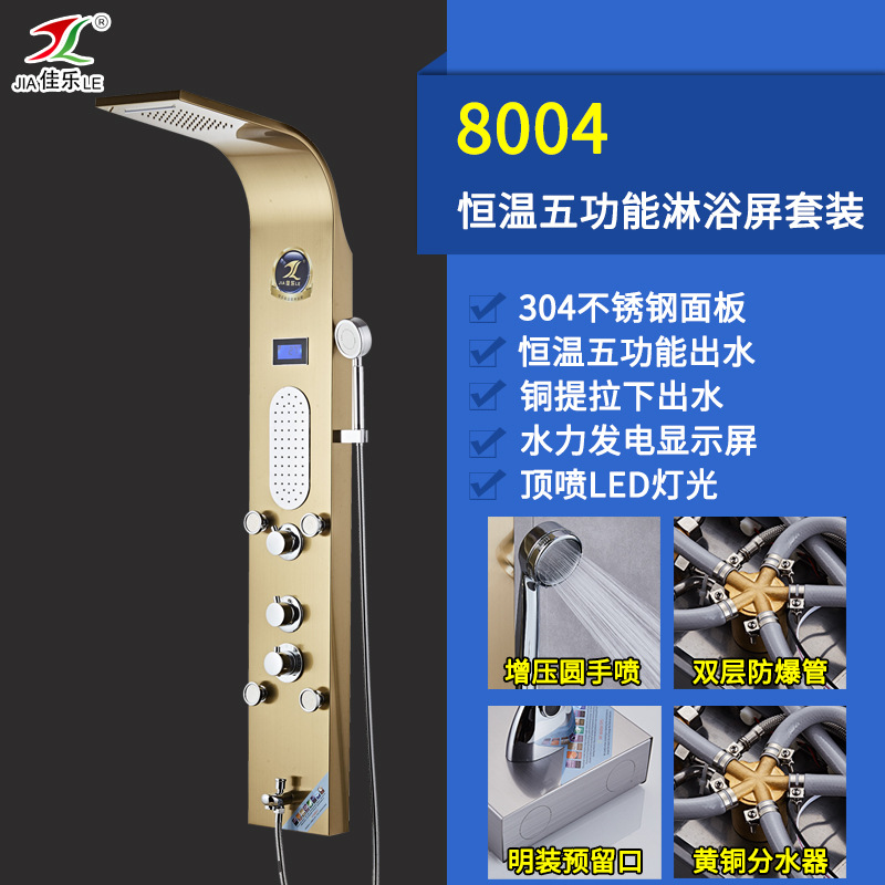 每款淋浴屏都包含瀑布出水、顶喷淋雨、背喷按摩、手持花洒、下出水