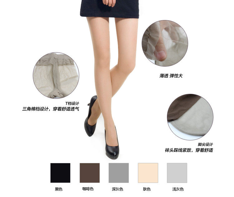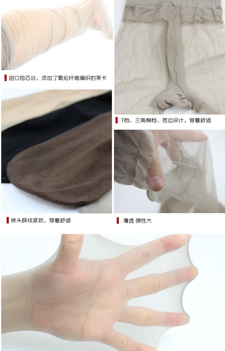 【产品特点】: 吸湿,透气功能,让你的腿部肌肤也能做个“深呼吸”。腰部,腿部特殊加强功能,防滑塑身。抗菌功能,防止细菌滋生,对敏感肌肤尤宜,让你更自信。