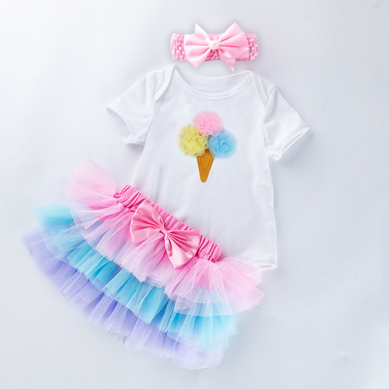 공장 직접 판매 국경 간 유아 의류 0-2 세 여자 아기 한 살짜리 휴일 의류 반팔 하렘 6 층 스커트 정장