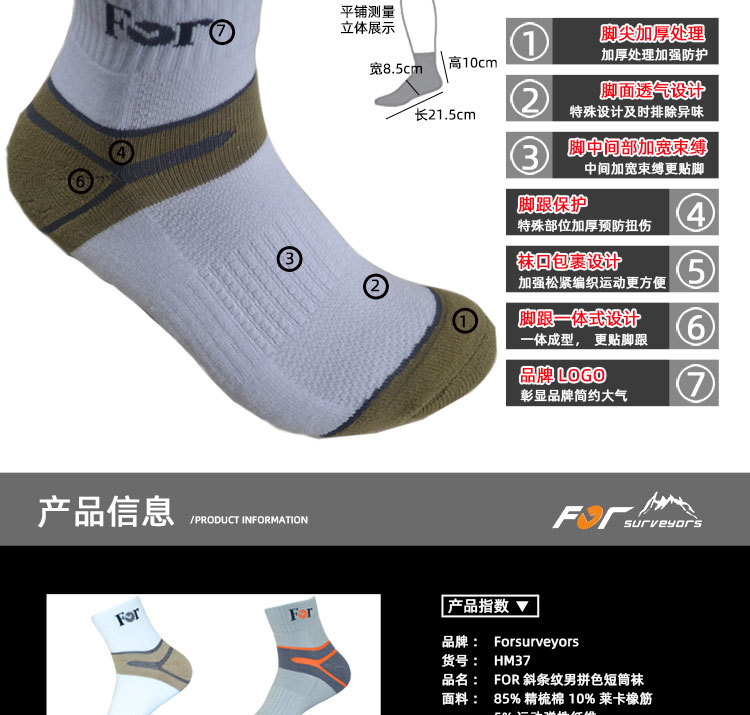 FOR 브랜드 아웃도어 양말 공장 도매 남성용 코마사 면 타월 바닥 스포츠 양말 깃털 농구 면 중목 양말스토어 가기