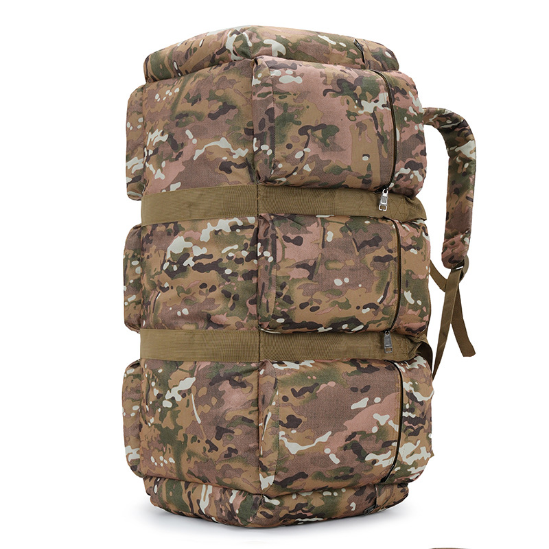 1,容量大,90L迷彩包,2,包的三种用法:双肩背、手提、斜挎,3.主仓外多个小口袋,8个小口袋可分类存放物品。4.户外,露营,收纳,旅行,托运,装行李,军训等理想包袋。5.包包结实耐用,背负舒适。