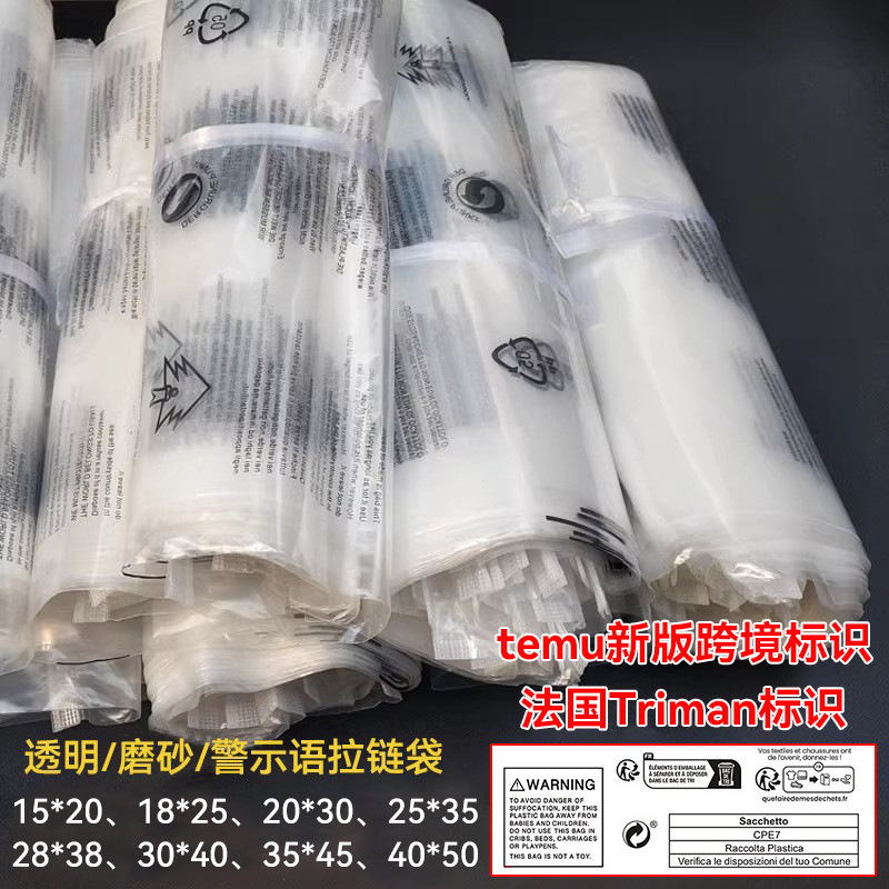 프로스트 국경 간 전자 상거래 경고 지퍼 가방 티셔츠 속옷 pe 투명 아마존 테무 포장 가방 대외 무역스토어 가기